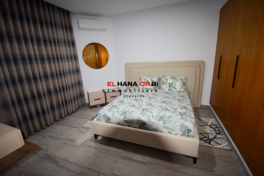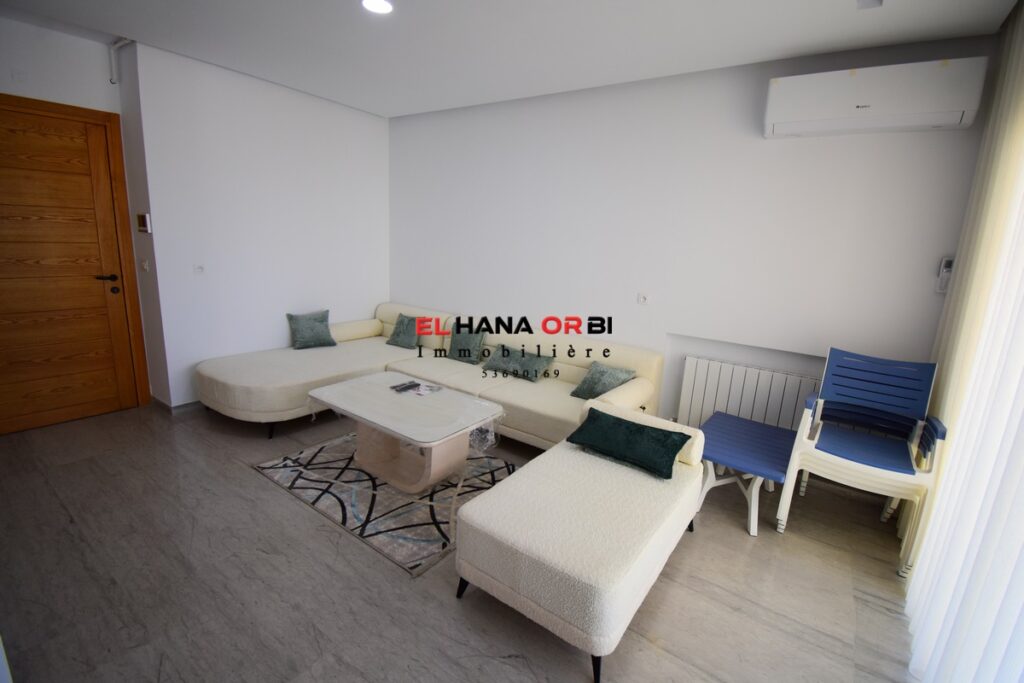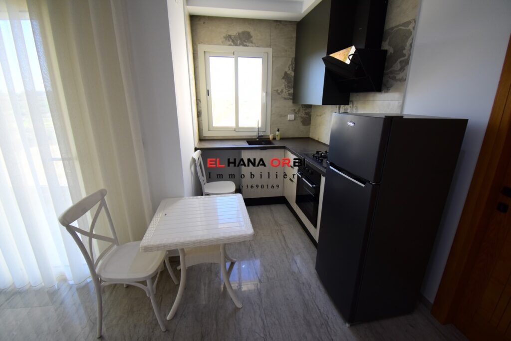L’agence EL HANA ORBI vous propose un appartement S+1 neuf, moderne et élégant, disponible pour location estivale, avec double ascenseur, au cœur de la zone touristique.