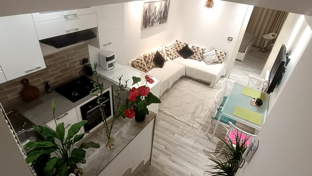 Appartement coquette à Nabeul 40m² S+1 étage de villa haut standing bien meublé et bien équipée à louer à partir du 20 Novembre 2025, situé dans un quartier calme route de Tunis à côté Anouar Market et MG auto à Nabeul.