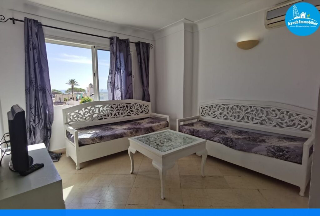 Un Appartement à vendre à Hammamet zone Hôtel Miramar à 100m de la plage. L’Appartement fait 65m² comme une surface totale qui se compose d’un salon avec une belle vue de mer ,2 chambres ,une salle de douche et une cuisine . Prix 225.000dt.