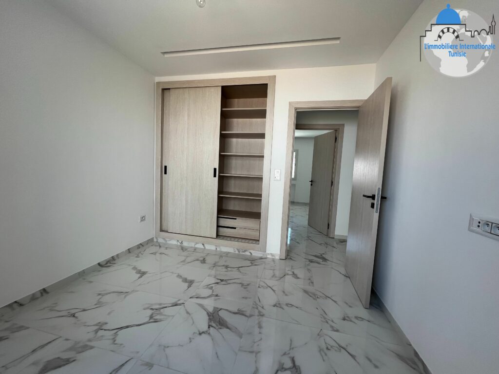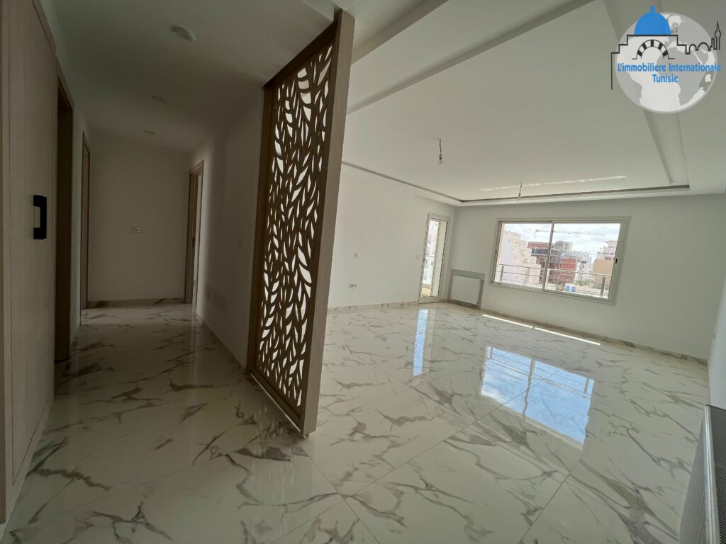 Un bel appartement S+2 avec place de parking au sous-sol, situé à Sahloul 4 dans une résidence haut standing dotée de deux ascenseurs.