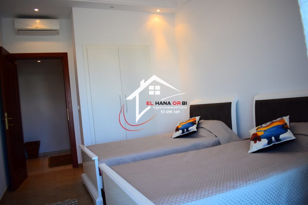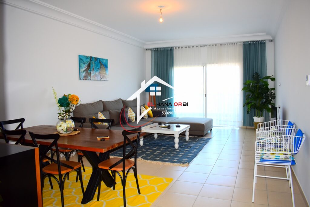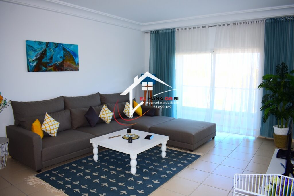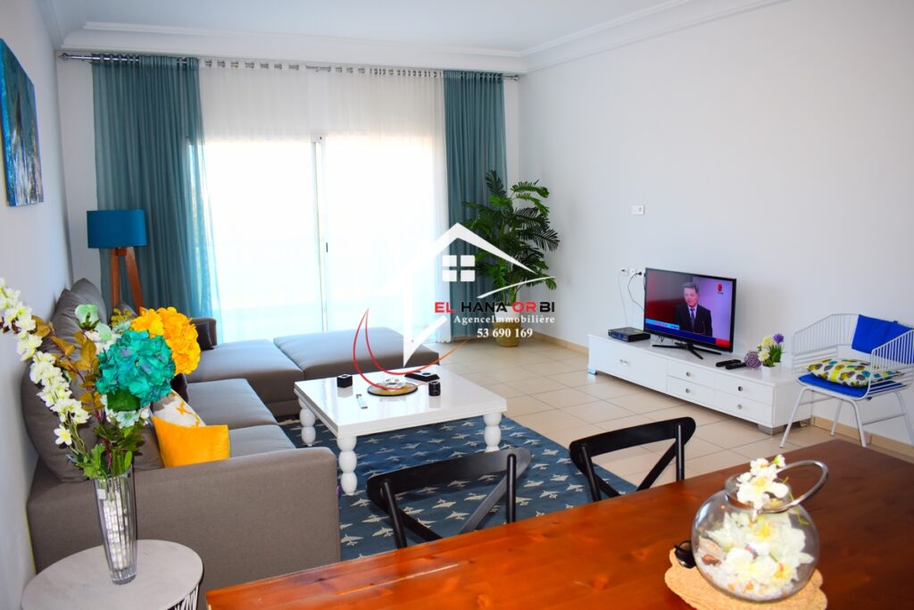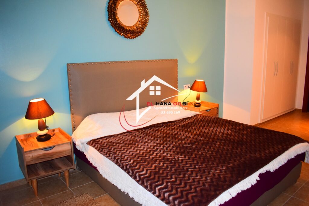 l’agence EL HANA ORBI vous propose en location estivale un appartement S+2 avec vue mer, situé au 2ᵉ étage d’une résidence calme et moderne avec ascenseur, en plein zone touristique Mahdia