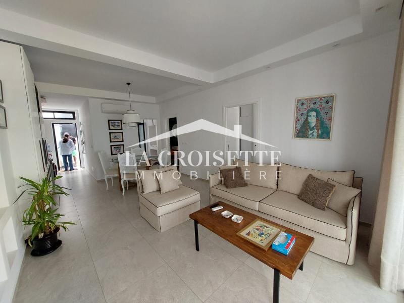 Situé dans un quartier résidentiel prisé de La Marsa, cet appartement meublé S+2 pieds dans l'eau est un véritable havre de paix pour ceux qui cherchent à combiner confort, élégance et vue imprenable sur la mer. Proposé à la location par La Croisette Immobilière Tunisie, cet appartement exceptionnel répond aux attentes des plus exigeants.