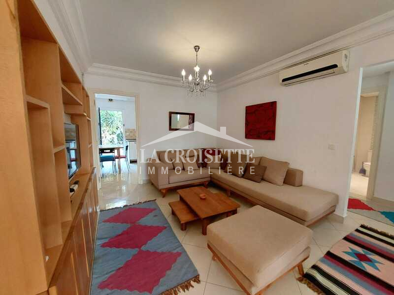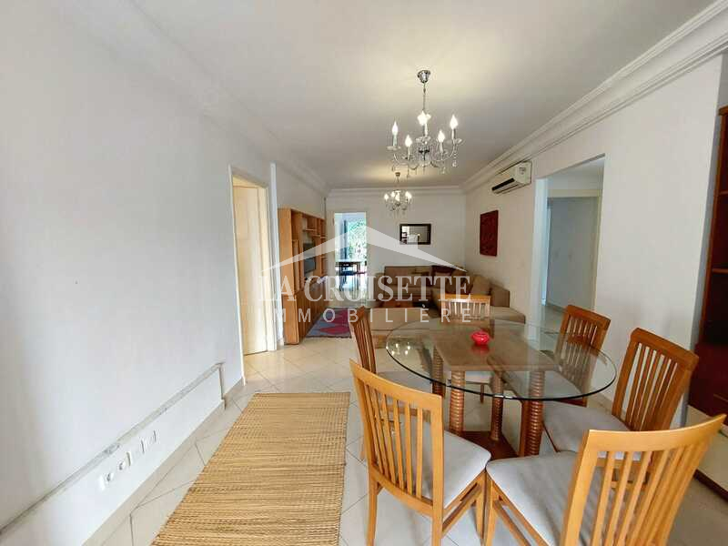 La Croisette Immobilière Tunisie vous propose à la location un appartement meublé S+3 avec jardin situé dans une résidence gardée à Gammarth.