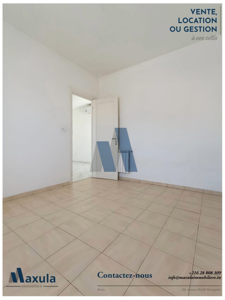 Ce logement est une excellente opportunité pour ceux qui cherchent un endroit calme, sécurisé et bien situé, à proximité des transports en commun. N'hésitez pas à nous considérer pour votre nouvelle adresse à Radès Meliane 1.