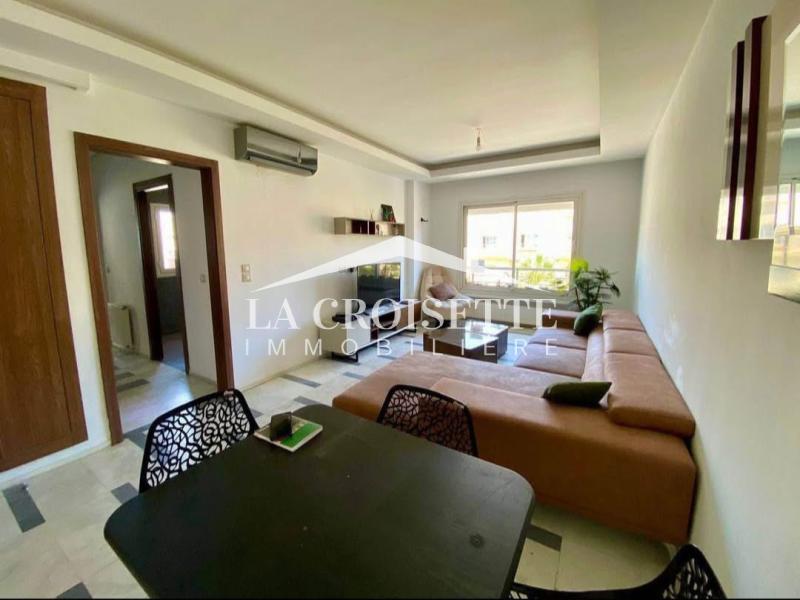 La Croisette Immobilière Tunisie vous propose à la location un appartement S+1 richement meublé occupant le premier étage d’une résidence gardée aux Berges du Lac 2.