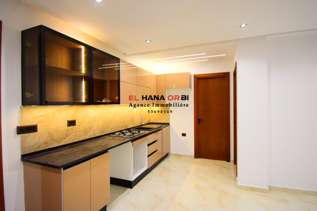 L’agence EL HANA ORBI vous propose une excellente opportunité d’acquérir un appartement S+1, situé dans un secteur très recherché, à quelques pas de la mer