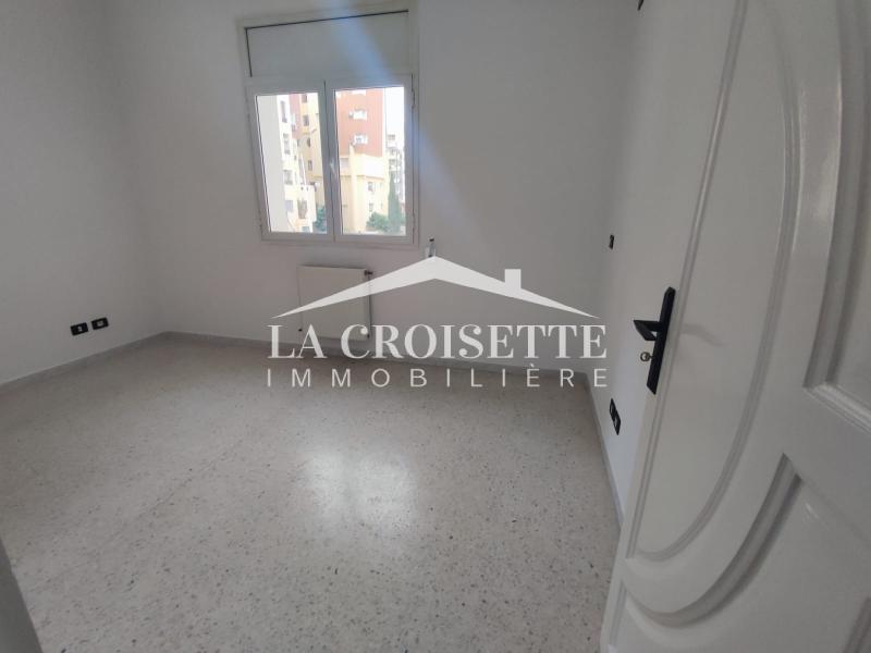 Situé dans le cœur de Tunis, cet appartement S+2 entièrement rénové est proposé à la location par La Croisette Immobilière Tunisie. Occupant le cinquième étage d'une résidence sécurisée et gardée à Ain Zaghouan El wahat, ce logement offre tout le confort nécessaire pour un séjour agréable et paisible.
