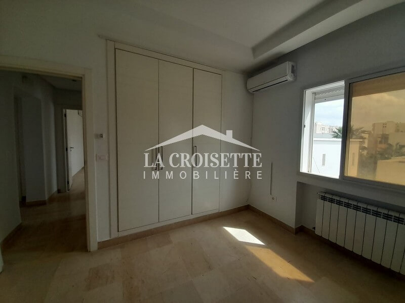 La Croisette Immobilière Tunisie vous propose à la location un appartement S+2 occupant le deuxième étage d’une résidence privée située aux Jardins de Carthage.