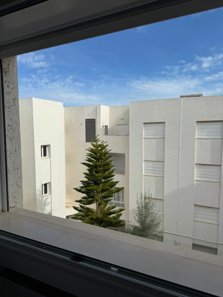 À vendre, superbe appartement S2 de 149 m² comme neuf, situé au 3ᵉ étage (dernier) d’une résidence moderne, familiale, gardée, idéalement implantée au cœur de la zone touristique de Hammamet Nord, avec la possibilité d’aller à pied à l’une des plus belles plages de Hammamet Nord, et à proximité immédiate de toutes les commodités.