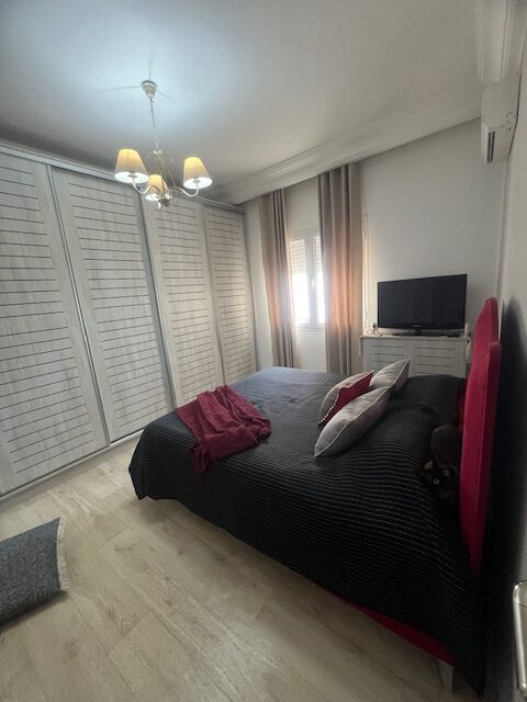 L'appartement se distingue par son salon lumineux avec parquet, créant une atmosphère chaleureuse et accueillante. La cuisine moderne, entièrement équipée avec four, plaque, hotte et autres, est conçue pour offrir le maximum de commodité et de confort culinaire. La chambre à coucher principale, équipée d'un dressing intégré, est un espace idéal pour se reposer et se ressourcer. Trois climatiseurs garantissent un confort optimal en toute saison, tandis qu'une place de parking privée au sous-sol offre une solution pratique pour les véhicules.
