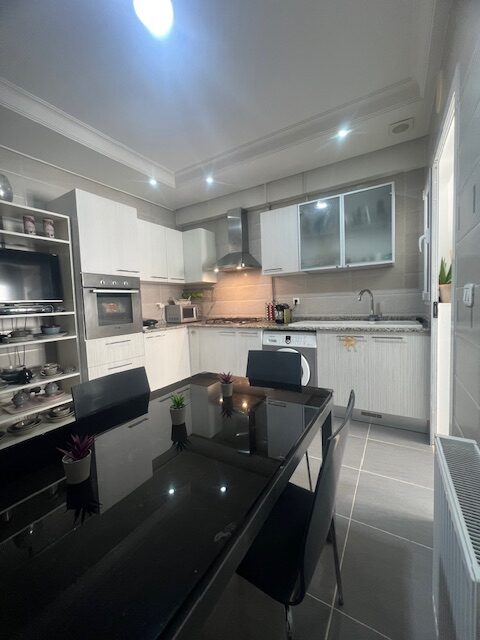 Cuisine moderne entièrement équipée (four, plaque, hotte, etc.)