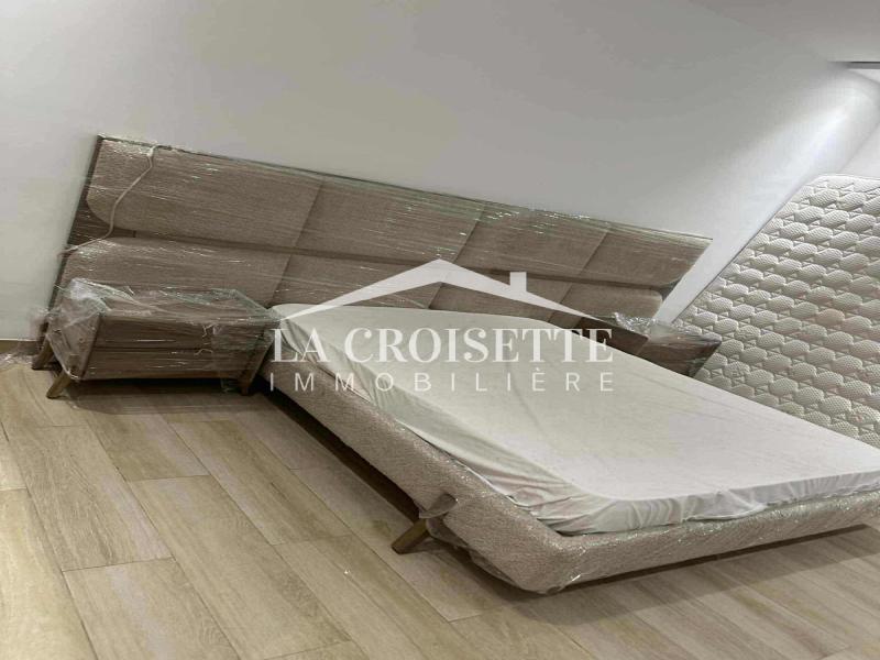 La Croisette Immobilière Tunisie vous propose à la location un appartement S+2 meublé occupant le premier étage d’une résidence gardée située à Ain Zaghouan Nord.