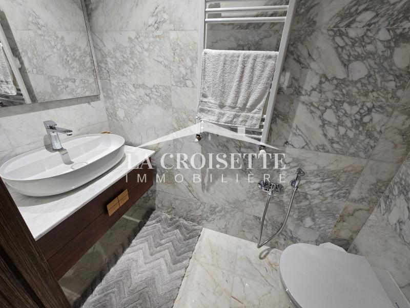 Cet appartement meublé aux Jardins de Carthage offre une opportunité idéale pour ceux qui recherchent un logement de qualité, sécurisé et bien situé. N'hésitez pas à découvrir ce havre de paix et de confort au cœur d'une des zones les plus en vogue de Tunis.