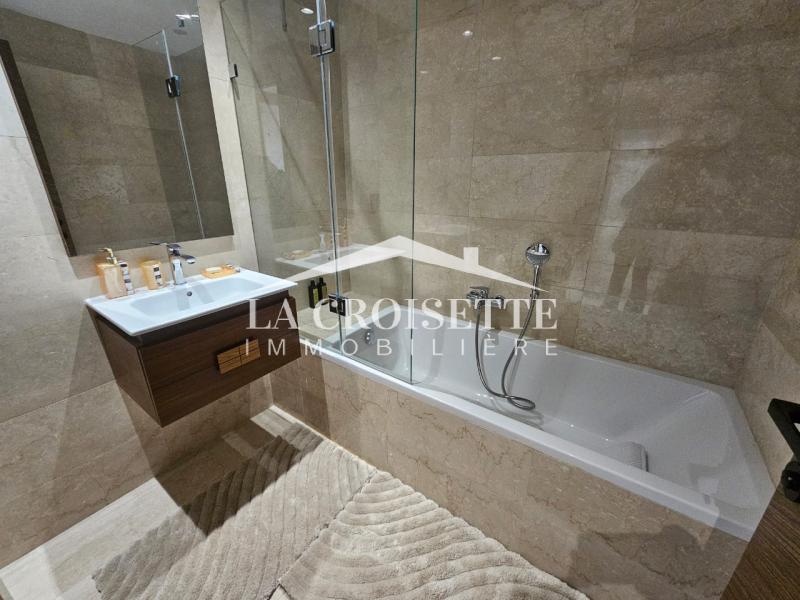 Situé dans l'un des quartiers les plus prestigieux de Tunis, aux Jardins de Carthage, ce magnifique appartement S+2 meublé est proposé à la location par La Croisette Immobilière Tunisie. Occupant le deuxième étage d'une nouvelle résidence gardée, cet appartement allie sécurité, confort et élégance.