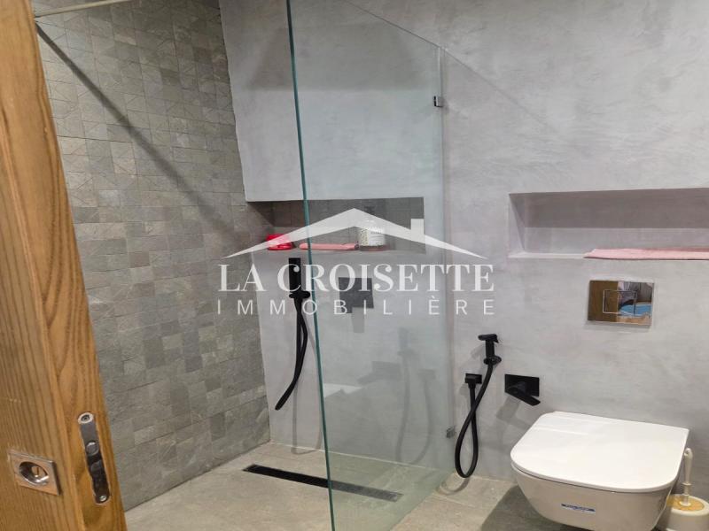 Situé dans l'une des zones les plus prisées de La Marsa, cet appartement S+2 meublé est proposé à la location par La Croisette Immobilière Tunisie. Ce bien immobilier de standing, occupant le rez-de-chaussée d'une résidence sécurisée et élégante, offre un cadre de vie idéal pour ceux qui recherchent confort, espace et tranquillité.