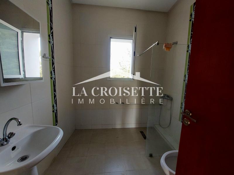 La Croisette Immobilière Tunisie vous propose à la location un appartement S+3 occupant le premier étage d’une résidence gardée à La Soukra.