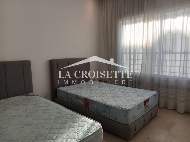 La Croisette Immobilière Tunisie vous propose à la location un appartement S+3 meublé situé dans une résidence gardée aux Berges du Lac 2.