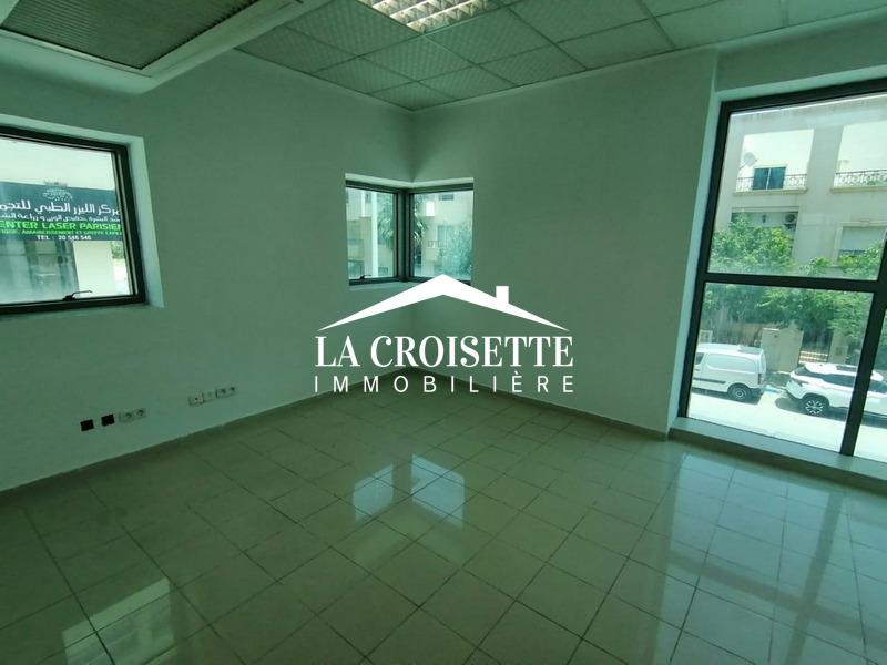 La Croisette Immobilière Tunisie vous propose à la location un bureau open-space d’une superficie de 220 mètres carrés occupant le rez-de-chaussée d’un immeuble bureautique situé aux Berges du Lac 2.