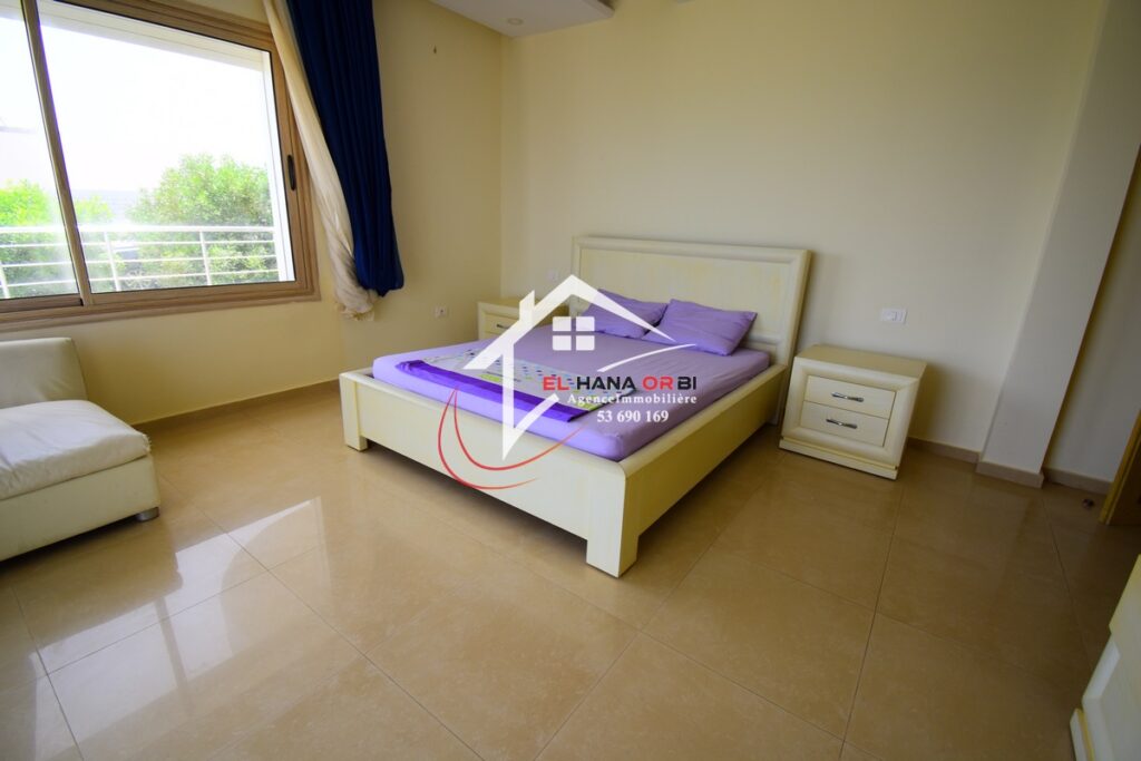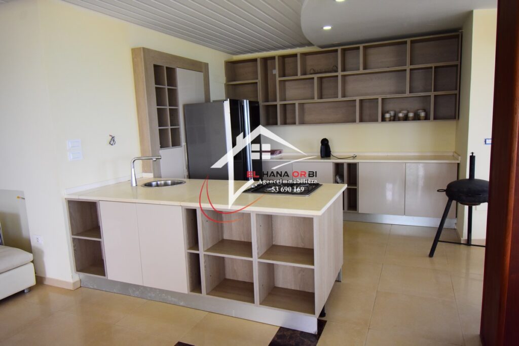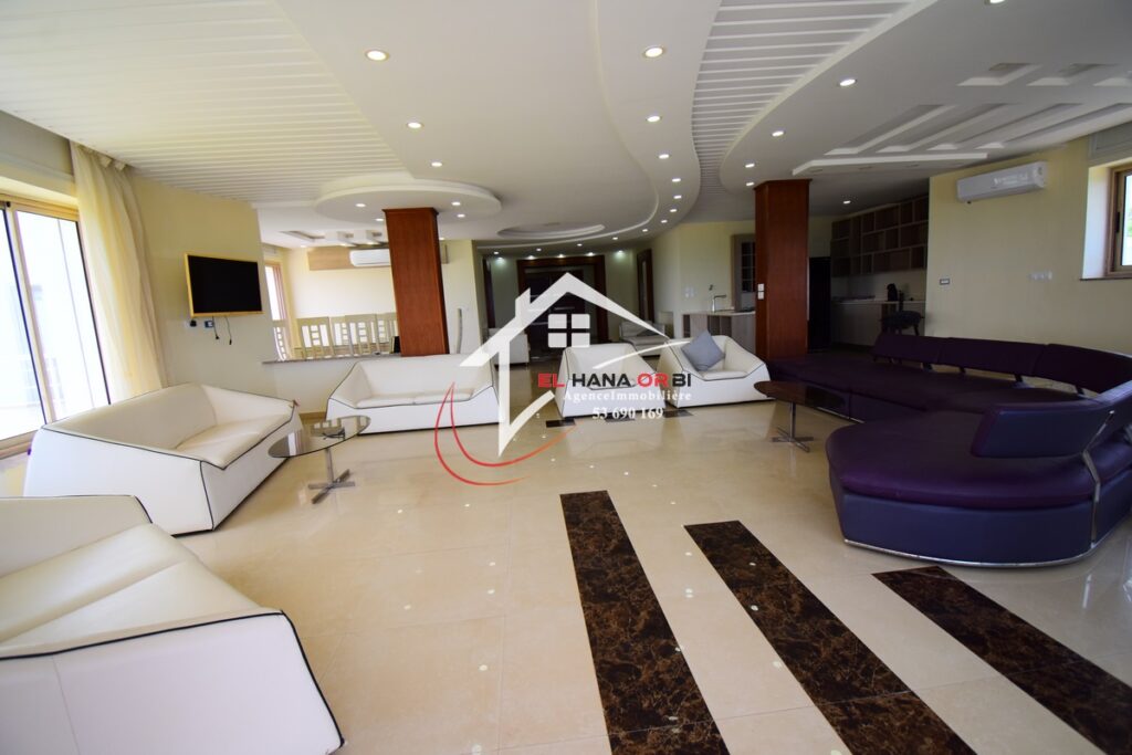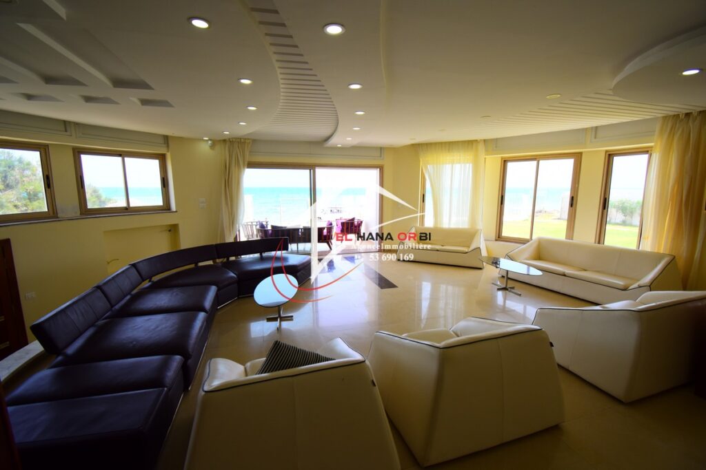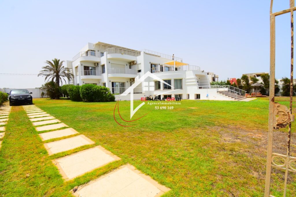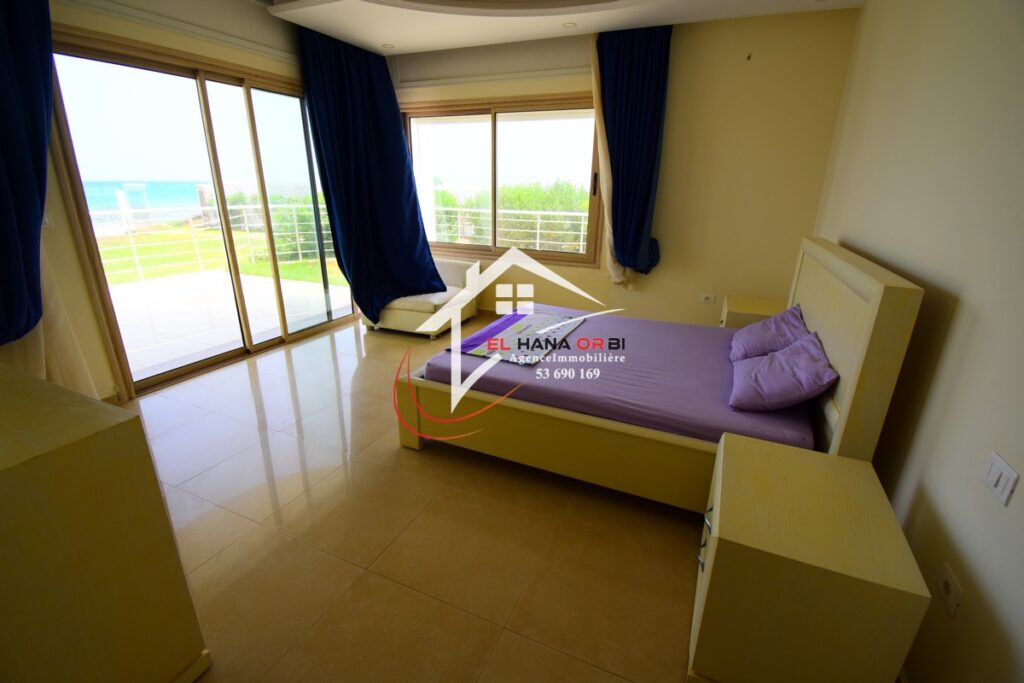 L’Agence EL HANA ORBI vous propose en location estivale un magnifique château en front de mer, idéalement situé au rez-de-chaussée à Rejiche, Mahdia