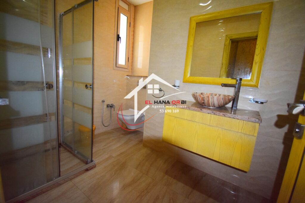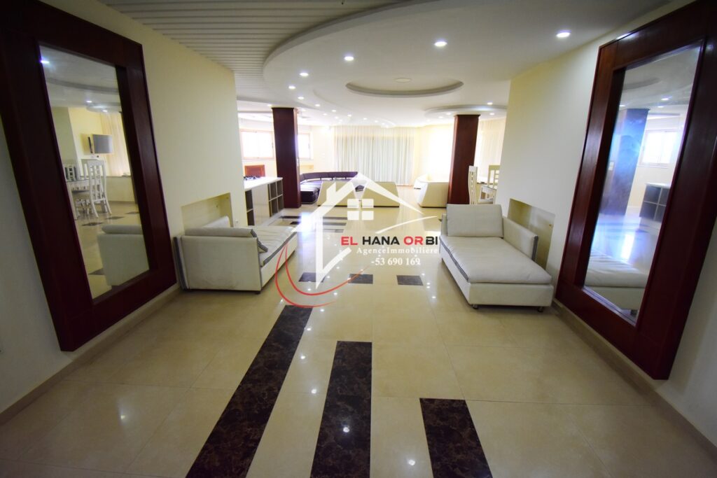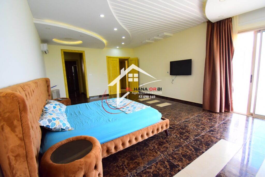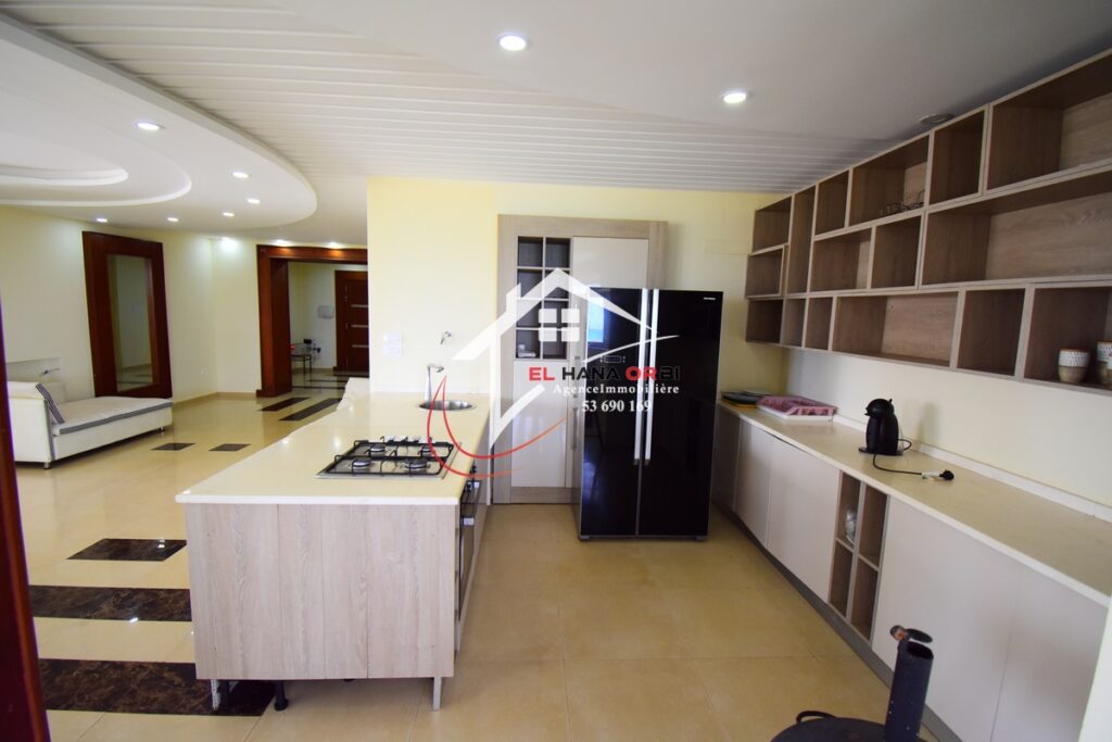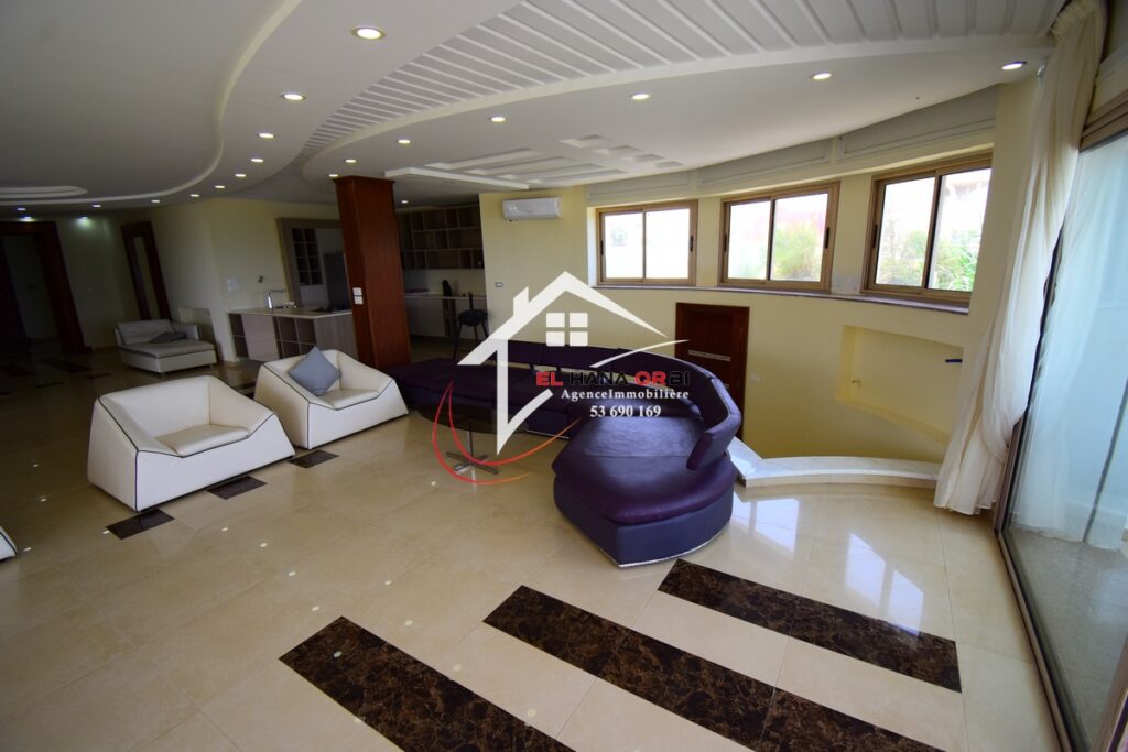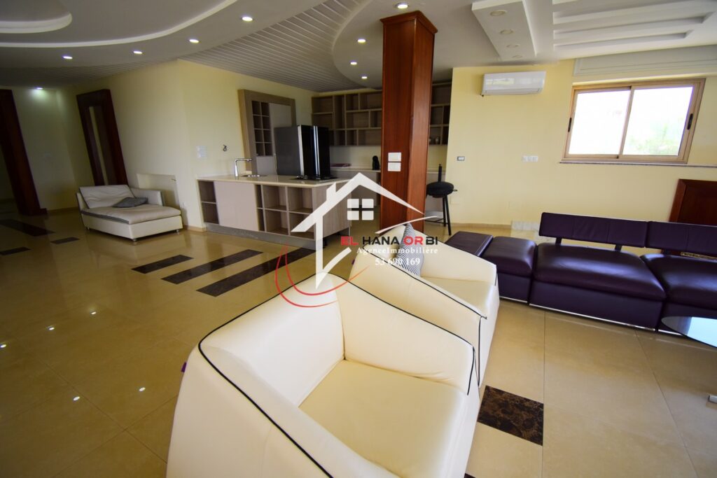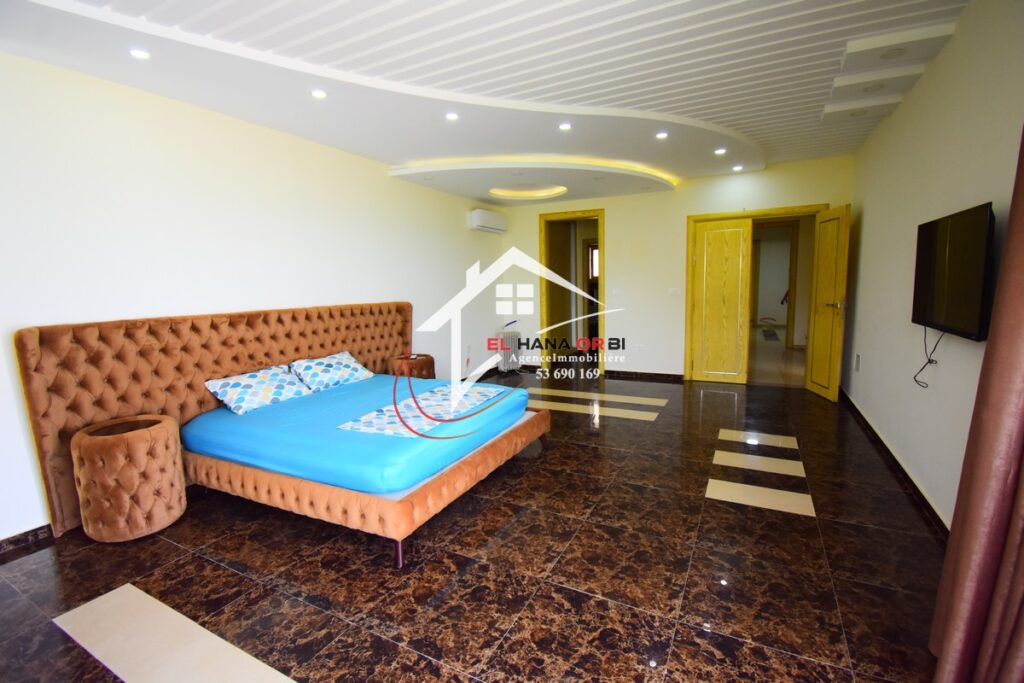 L’Agence EL HANA ORBI vous propose en location estivale un magnifique château en front de mer, idéalement situé au rez-de-chaussée à Rejiche, Mahdia