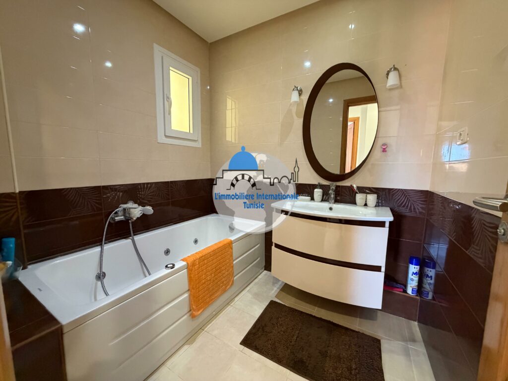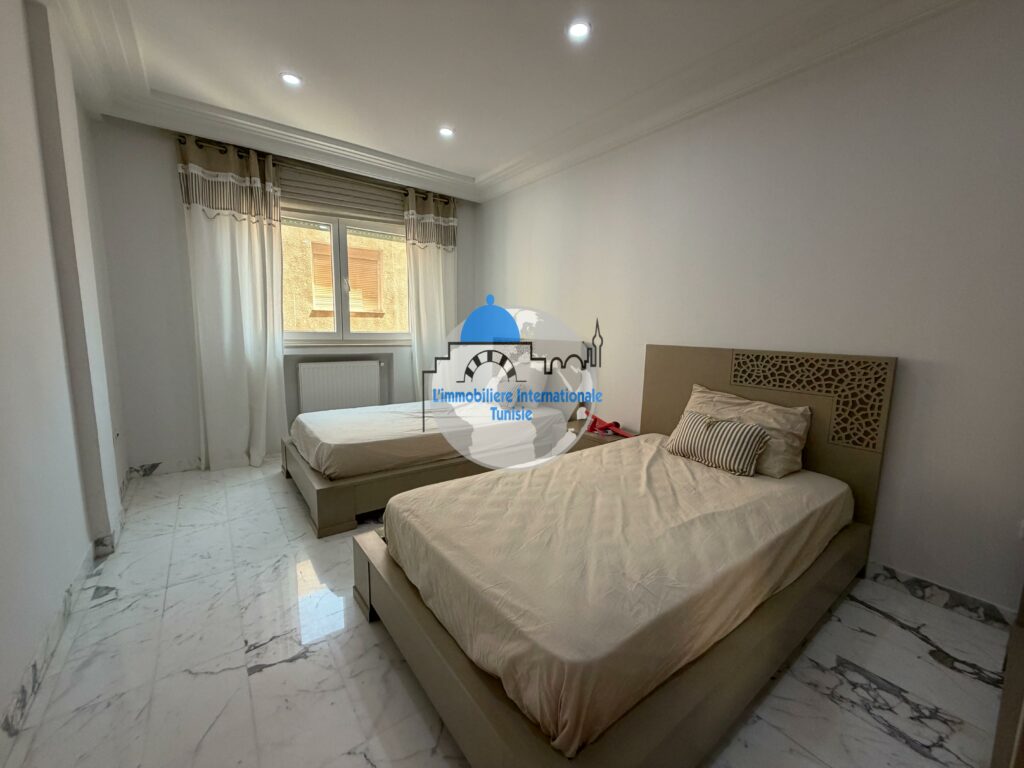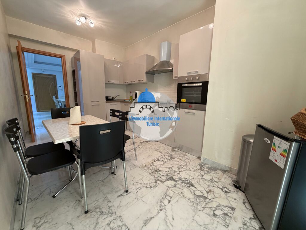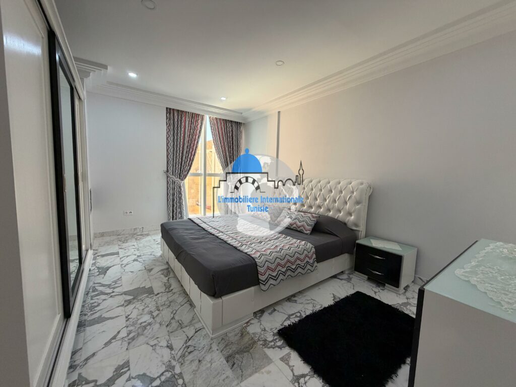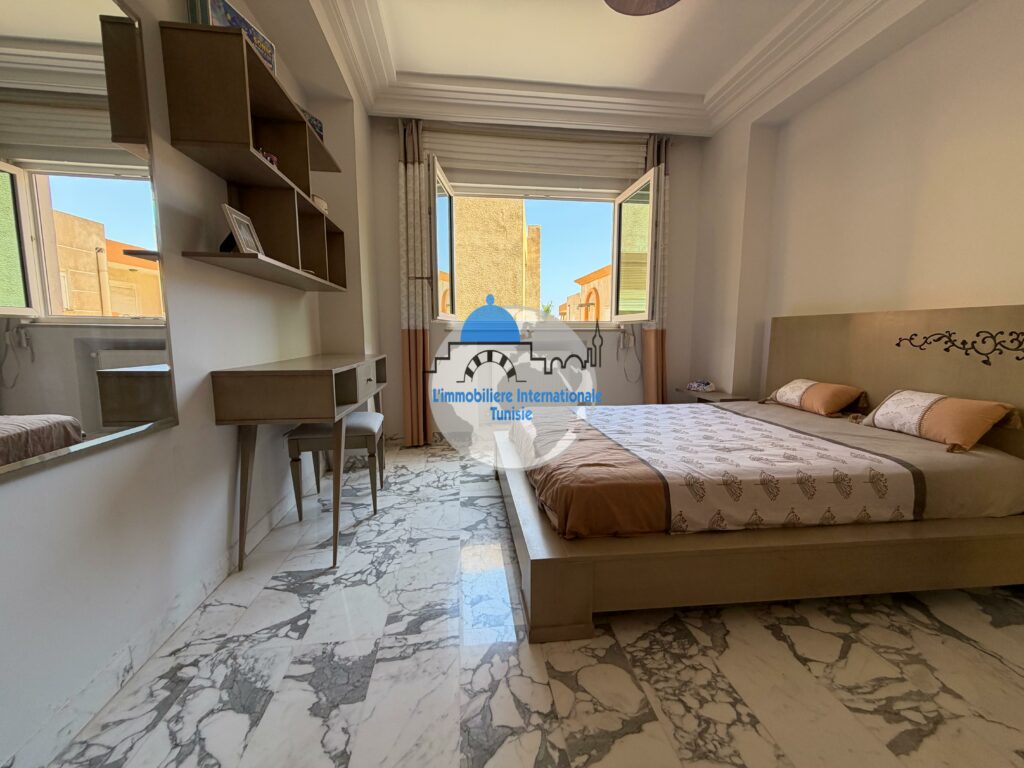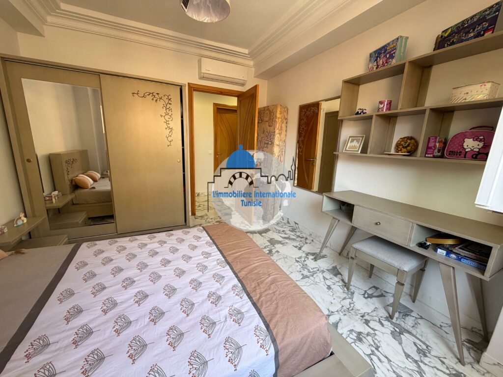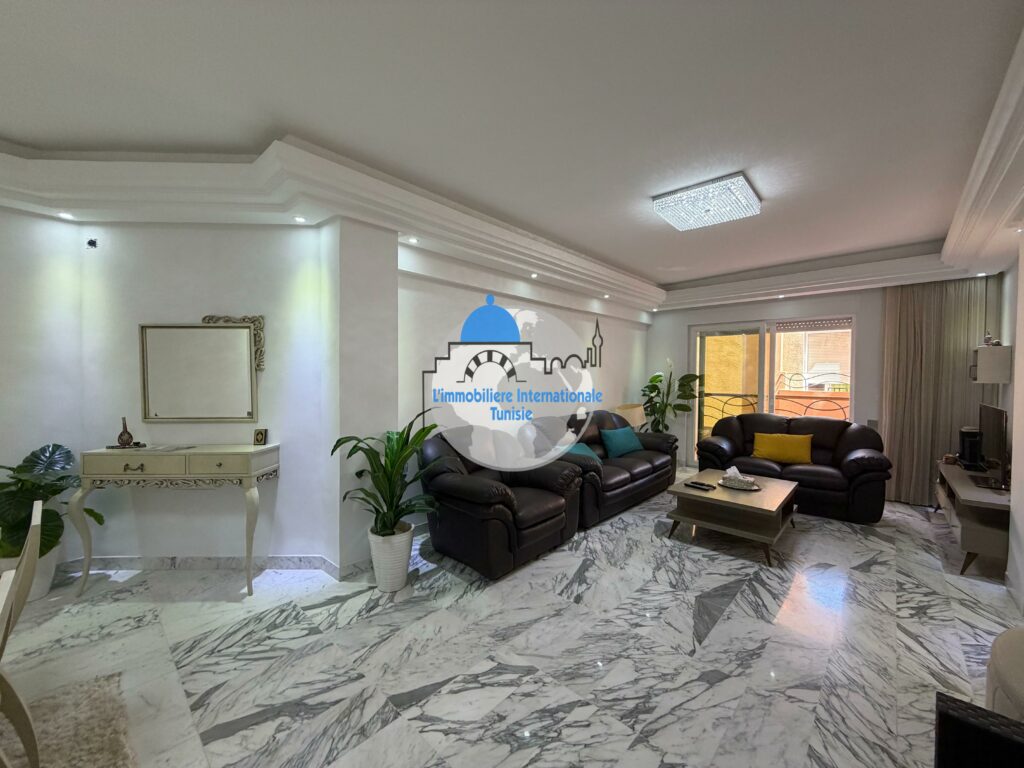 L’immobilière internationale Tunisie vous propose à la vente un magnifique appartement S+3, situé dans une résidence moderne et sécurisée avec piscine, à Chatt Mariem.