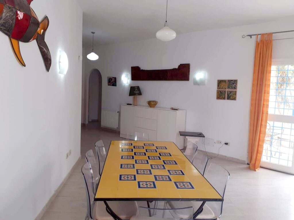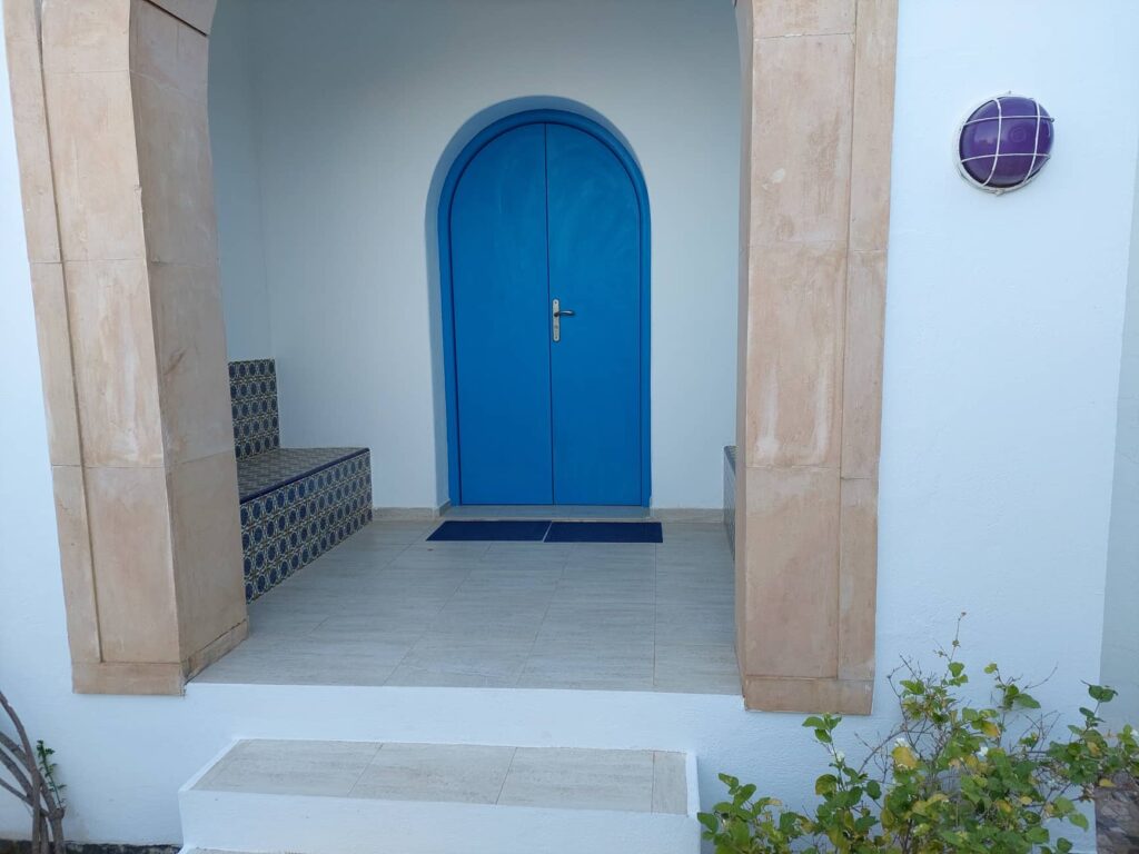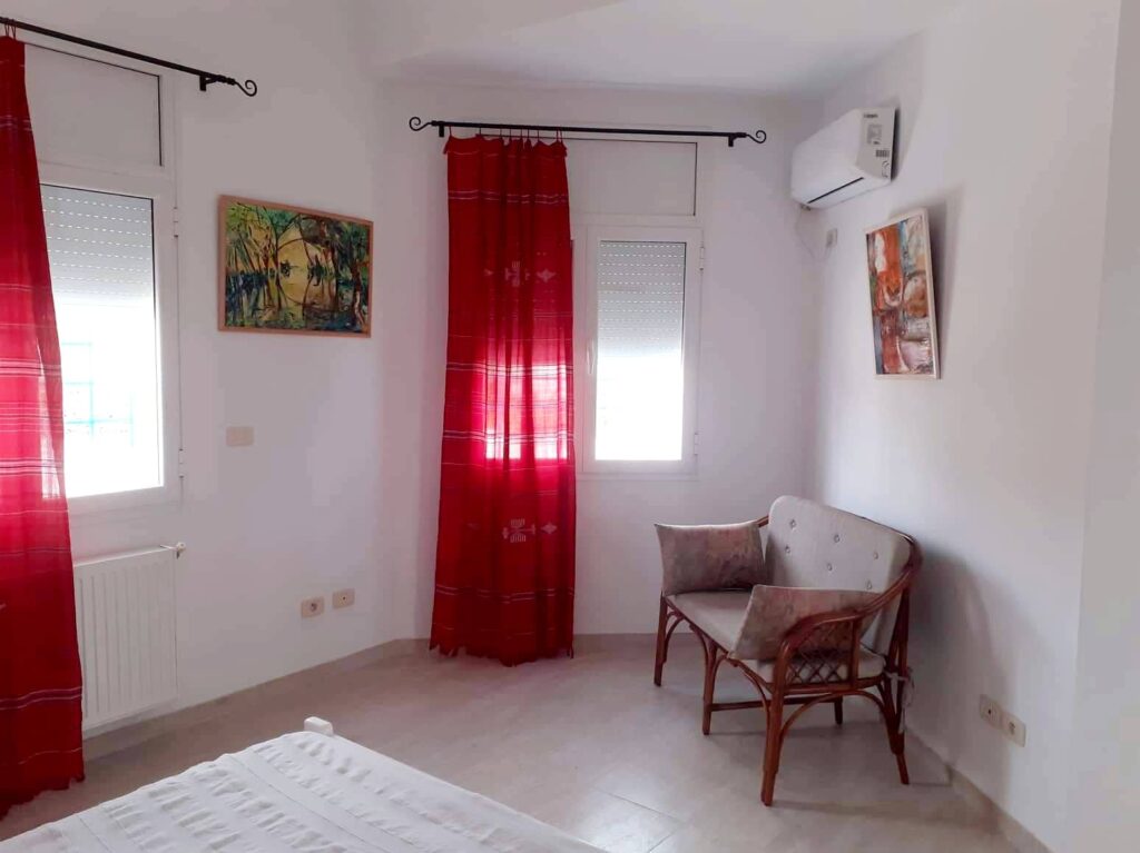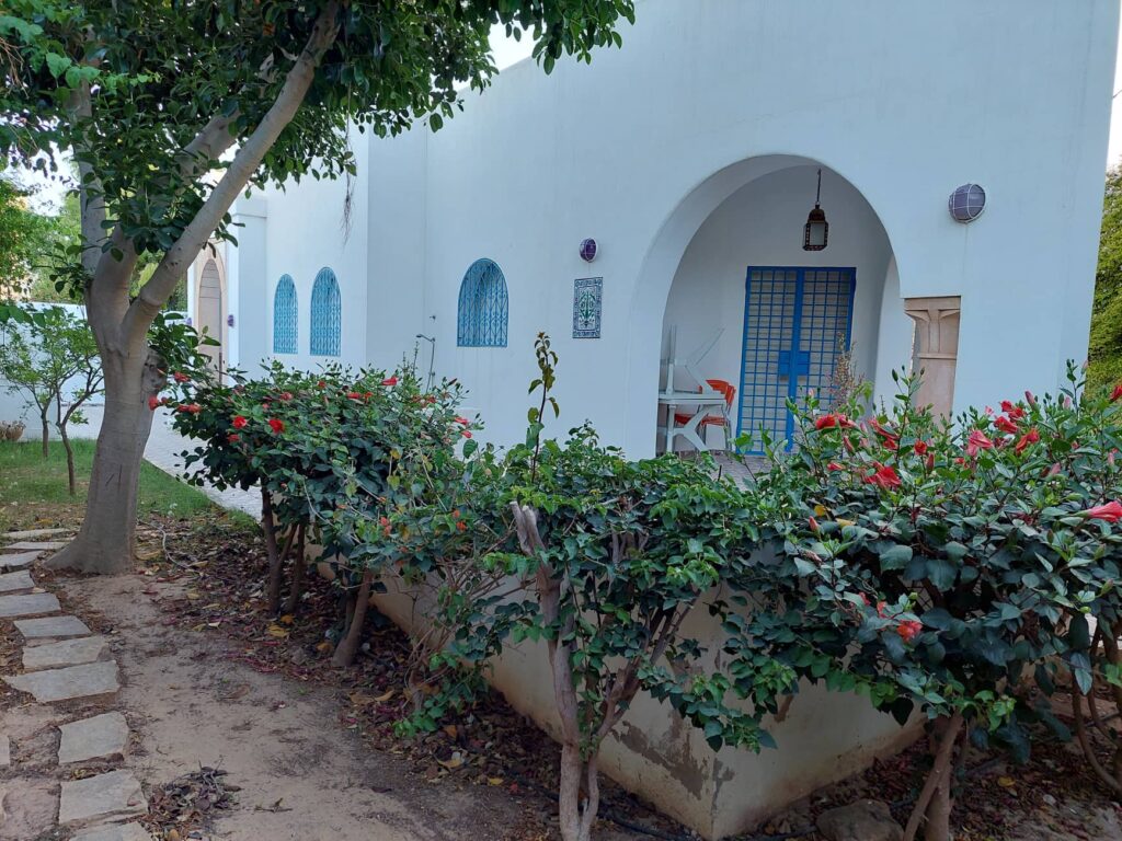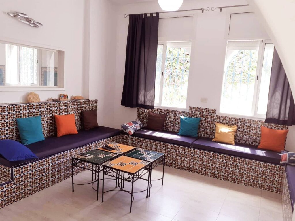 Location d’une semaine dans une grande villa meublée, style arabesque, composée d’un grand salon, 4 chambres à coucher, deux salles de bain, deux salles d’eau, une cuisine équipée d’un micro-onde, réfrigérateur, lave linge, lave vaisselle, haute aspirante, four, grille pain et cafetière. Plusieurs terrasses, jardin et entrée voiture. Climatisée. Quartier calme, centre ville et mer accessibles à pieds.