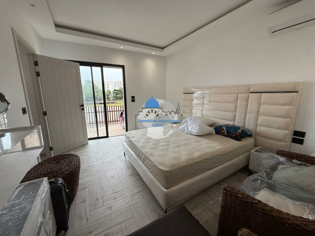 L’agence Immobilière internationale Tunisie met pour la vente une magnifique appartement de type S+1 richement meublé et toute neuf situé dans une résidence haut de gamme en bord de mer, offrant un cadre de vie idyllique et tout le confort rêvé.