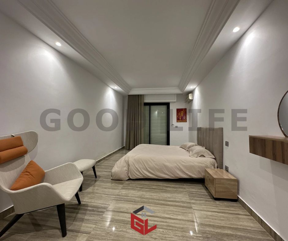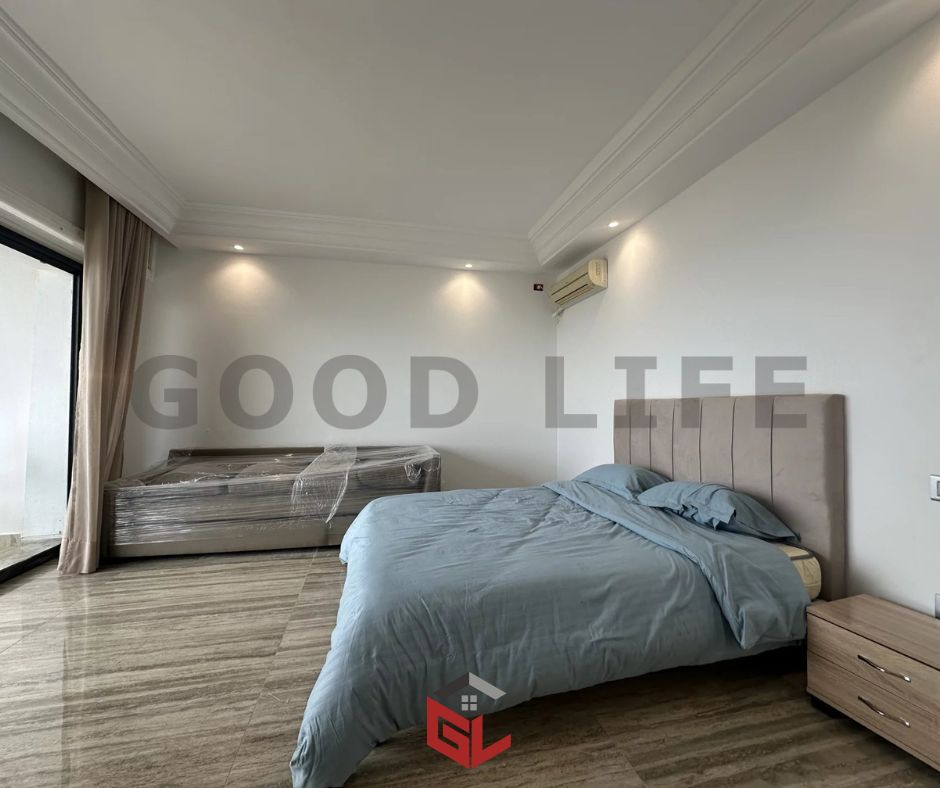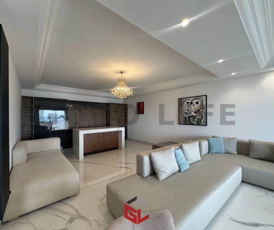 À La Marsa Cube, l’agence immobilière Good Life vous propose à la location un superbe appartement S+3 meublé en rez-de-chaussée, idéalement situé en bord de mer, offrant une vue imprenable et un cadre de vie d’exception.
