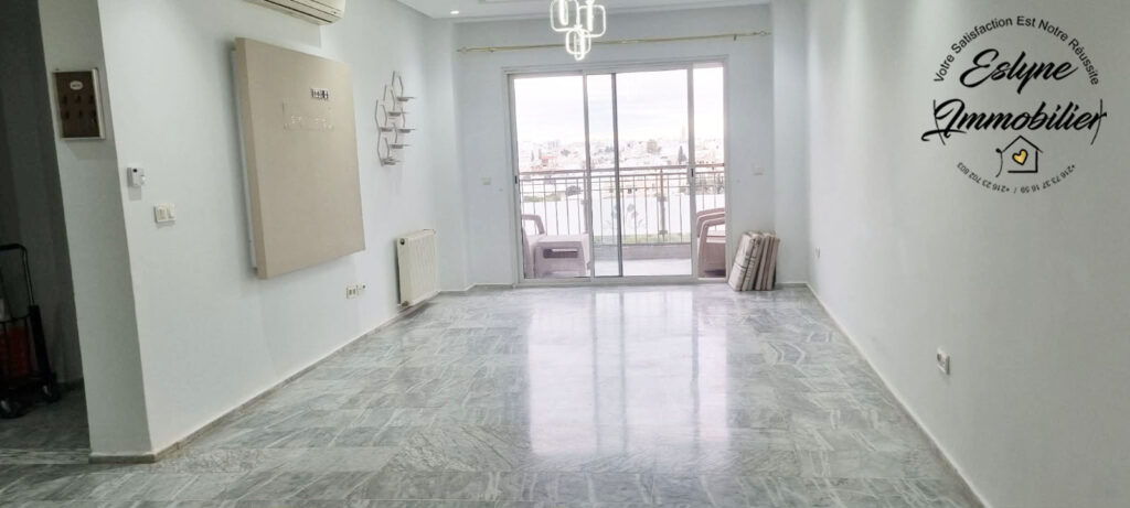 L’agence Eslyne Immobilier vous propose en location annuelle un superbe appartement S+2 semi-meublé, situé au 3ᵉ étage d’une résidence sécurisée avec double ascenseurs, en plein cœur de la zone touristique de Hammam Sousse, à Sousse – Tunisie.