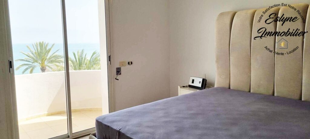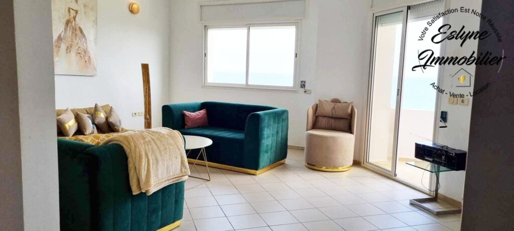 Eslyne immobilier met à votre disposition un magnifique Appartement de standing de type S+3 meublé Front Mer, d’une superficie de 130 m2 habitable dédiée à la location annuelle