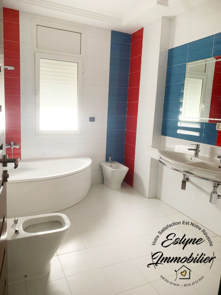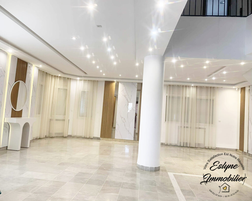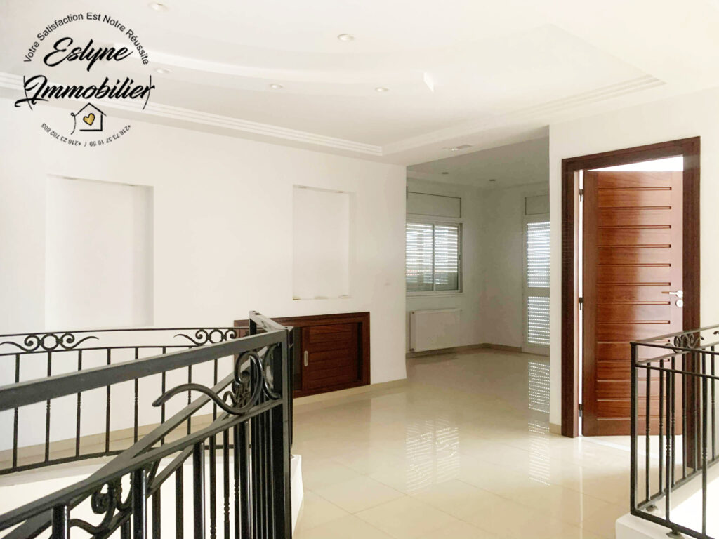 Eslyne Immobilier vous propose une magnifique villa indépendante de type S+4 non meublé, située à Khézama, dans un quartier résidentiel calme et proche de toutes les commodités