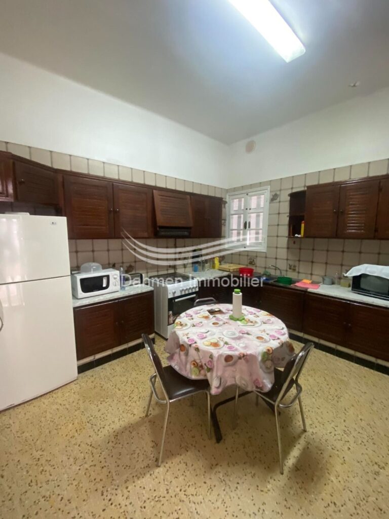 Dahmen Immobilier met en vente , une spacieuse villa avec un grand jardin situé sur une zone résidentielle, sécurisée à Hammem Sousse. * DÉTAILS : terrain : de 778 m², se compose d’un grand salon, salle à manger, 2 suites parentales, 2 chambres à coucher, une salle d’eau, une cuisine, un grand hall d’entrée, un hall intérieur, Équipements : dressings, climatiseurs, chauffage central, chauffage solaire, système d’alarme, un grand jardin ,une grande terrasse, un débarras, une buanderie, Majel avec moteur, hammam arabe, studio s+1,2 garage avec porte automatique, un construit et l’autre abri de voiture Emplacement : sur une route principale à Hammem Sousse – Titre foncier