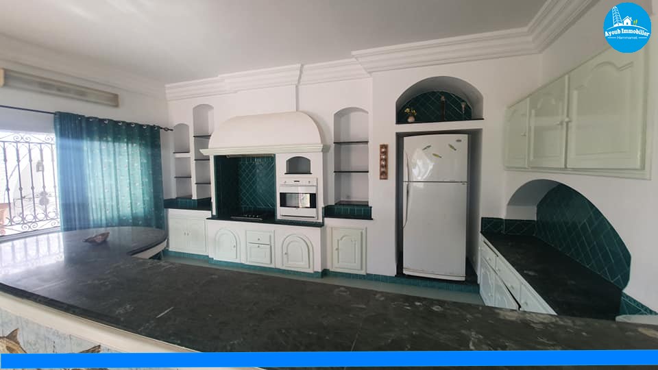 Un bien immobilier à louer à l’année à 4km de Hammamet, il se compose d’une grande maison de plain-pied de S+2 chauffées et climatisées, un double salons, une cuisine équipée avec un coin repas donnant sur une terrasse. Un grand studio indépendant de S+1 est aussi disponible. La maison bénéficie aussi d’un grand jardin arboré, un abri de voiture. Prix 1.400dt par mois.