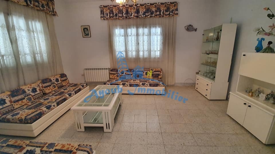 Maison indépendante de plain-pied à vendre à Hammamet , pas loin de Hôtel Sindbed. La maison fait 300m² de surface, S+2 chauffées et climatisées, une salle de bain et une cuisine donnant sur une grande terrasse. Entrée commune et pas de garage. Prix 320.000dt.