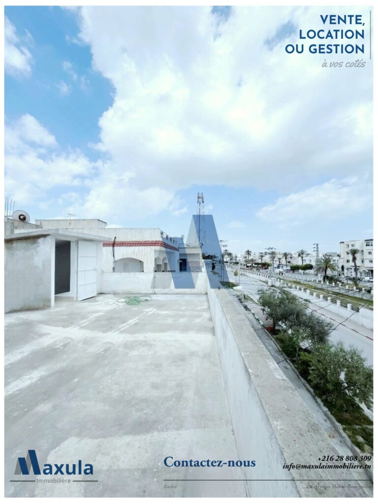 MAXULA IMMOBILIERE vous propose à la VENTE un petit IMMEUBLE EN R+1 avec REZ-DE-CHAUSSÉE COMMERCIAL et au premier étage un APPARTEMENT S+3 d’environ 110m², idéalement situé en plein CENTRE de BEN AROUS, sur la très recherchée AVENUE DU 14 JANVIER 2011, faisant directement face à la MOSQUÉE AL SHIFA.