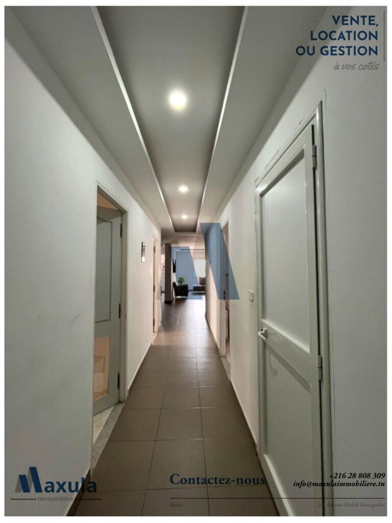 Le rez-de-chaussée abrite deux locaux commerciaux indépendants, actuellement loués, générant environ 2000 TND de loyer mensuel. Cette configuration permet non seulement de générer des revenus réguliers mais também de profiter d'une situation commerciale idéale, bénéficiant de la fréquentation de la zone.