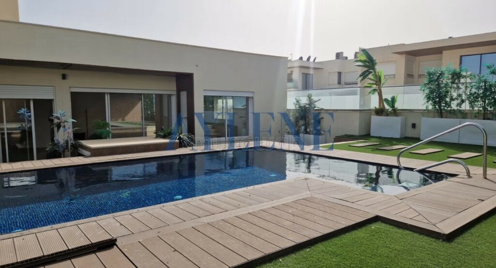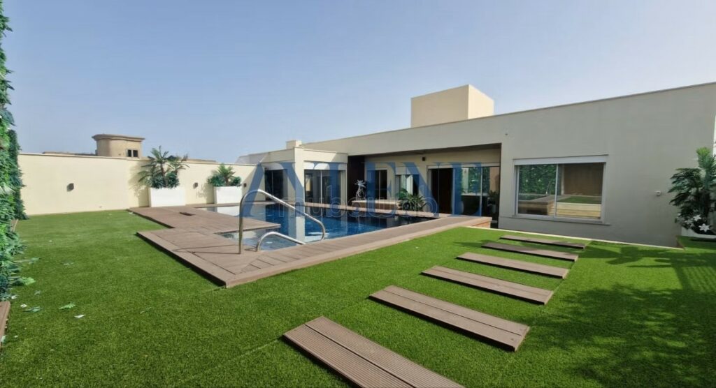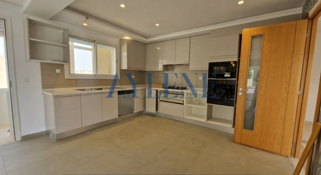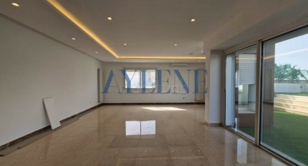 Aylene Immobilière propose à la location un penthouse neuf de 262 m², situé dans une résidence sécurisée et bien placée aux Jardins de Carthage.
