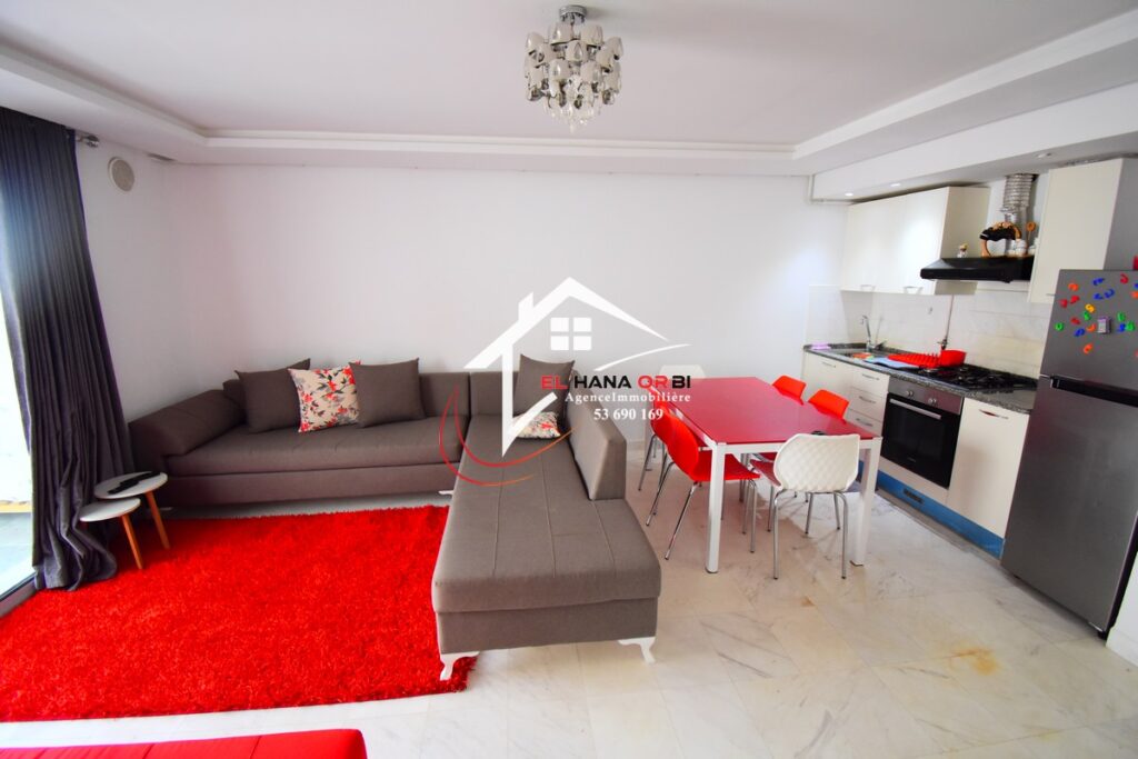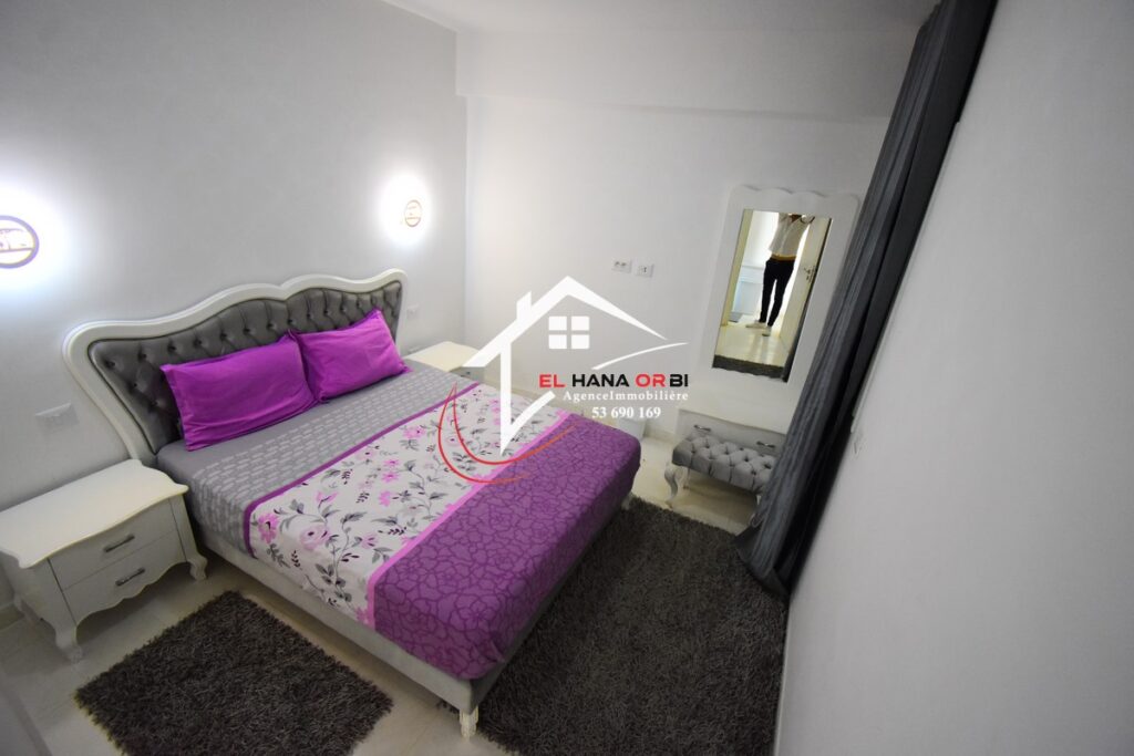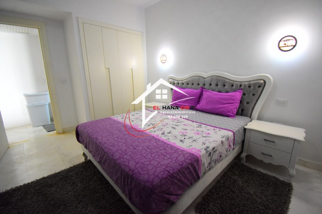 L’agence EL HANA ORBI vous propose un appartement S+1 pour location estivale, situé au 1er étage avec ascenseur, dans une résidence moderne, au cœur de la zone touristique de Mahdia, à proximité de la plage.