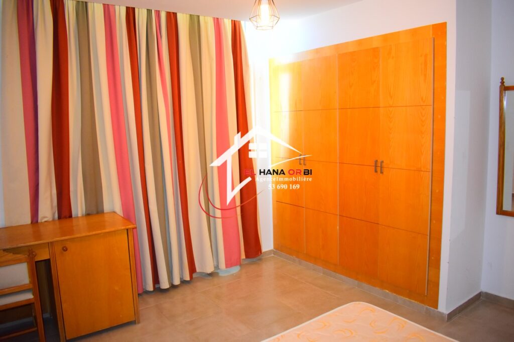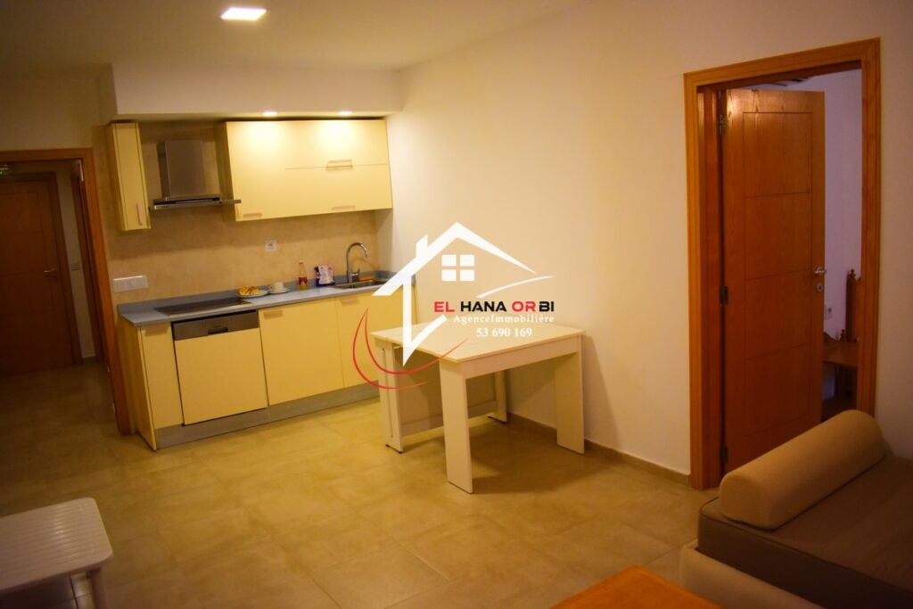 L’agence EL HANA ORBI vous propose un appartement S+1, pour location estivale, situé au 4e étage avec ascenseur, au sein de l’Hôtel Mahdia Beach, dans la prestigieuse zone touristique de Mahdia.