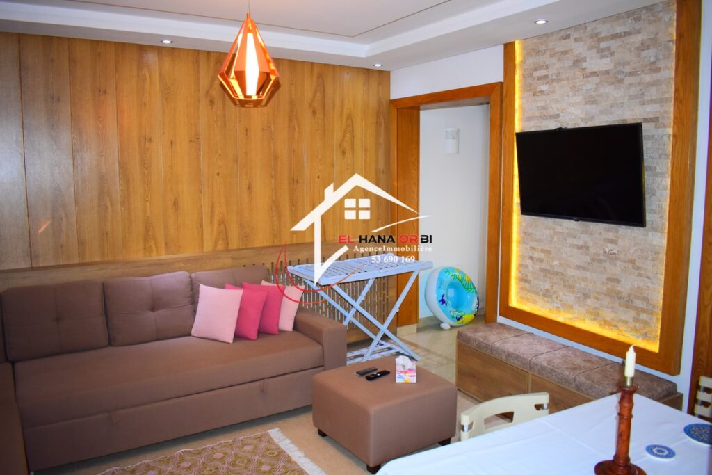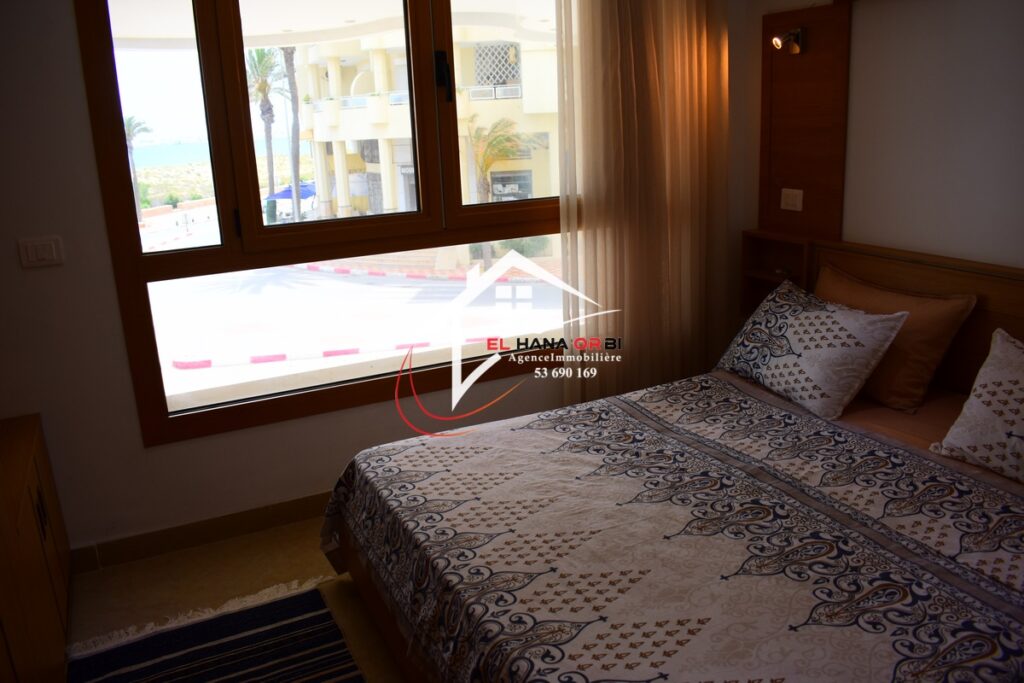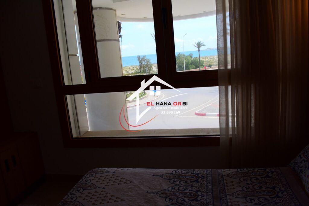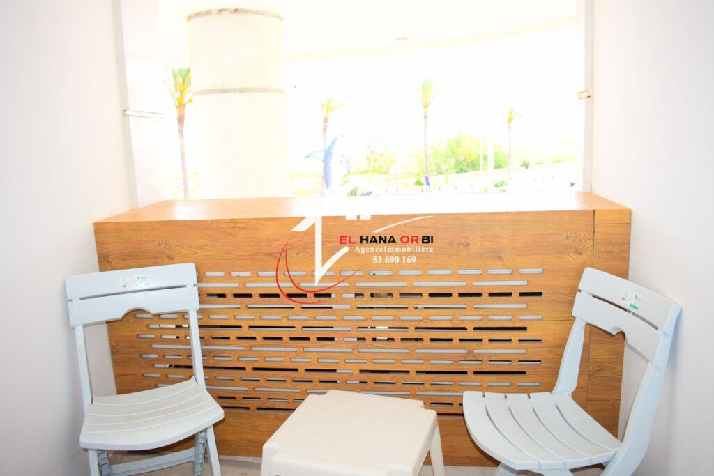 Découvrez ce magnifique appartement S+2 avec vue sur mer, idéalement situé en mezzanine d’une résidence moderne avec ascenseur, à la Corniche de Mahdia