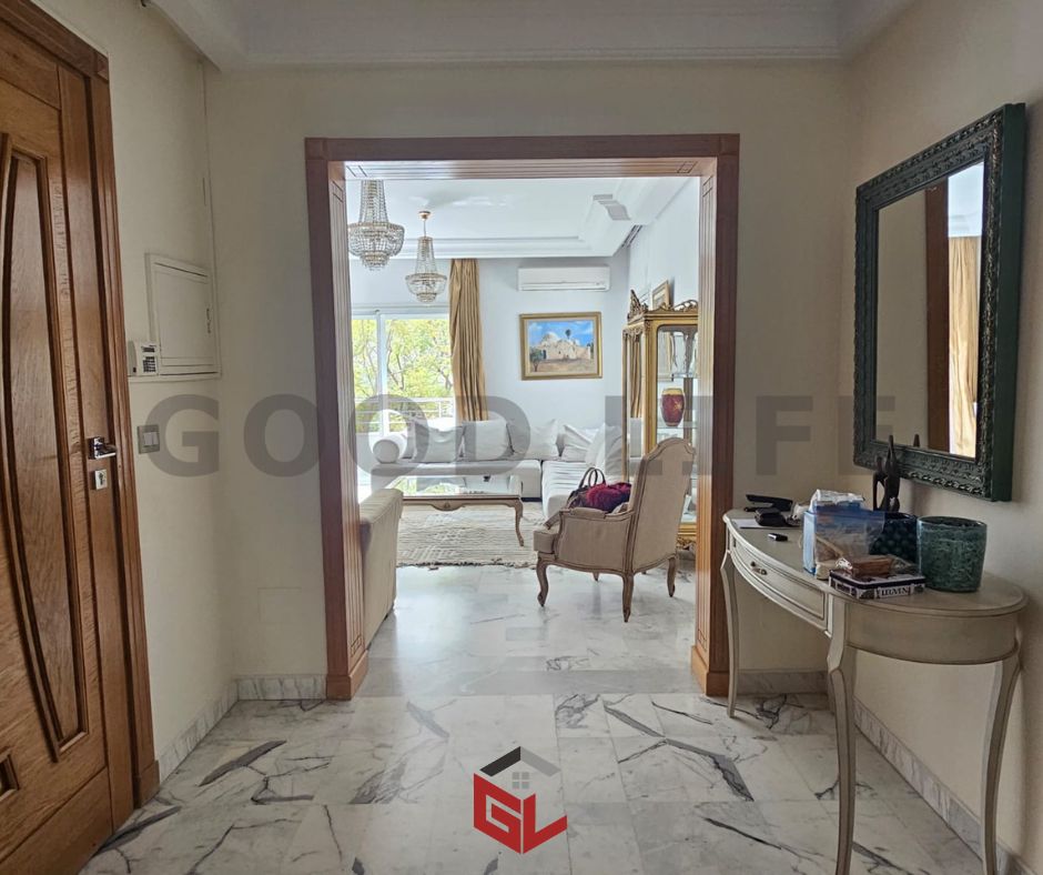 Situé dans le prestigieux quartier des Jardins de Carthage, nous vous proposons un appartement S+3 meublé de standing, idéal pour ceux qui recherchent un espace de vie confortable et élégant. Ce bel appartement, situé au 1er étage d'une petite résidence, offre une atmosphère paisible et sécurisée, parfaitement adaptée aux familles ou aux professionnels.