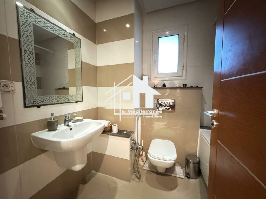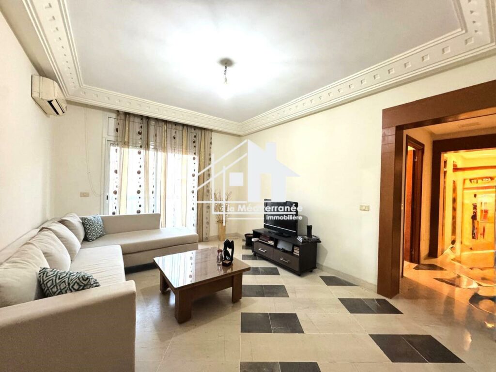 La Méditerranée Immobilière Lac 2 vous propose à la location un appartement S+2 meublé dans une résidence sécurisée et calme situé aux Jardins de Carthage. Il se compose de