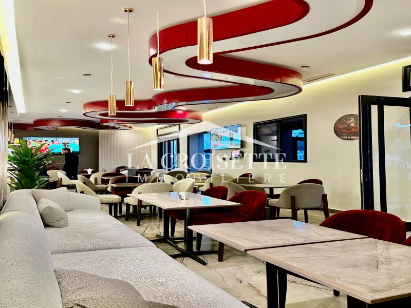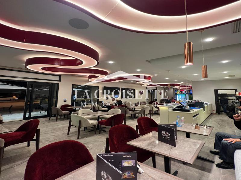 La Croisette Immobilière Tunisie vous propose à la location un salon de thé entièrement aménagé, idéalement situé sur une route principale très fréquentée à La Soukra.