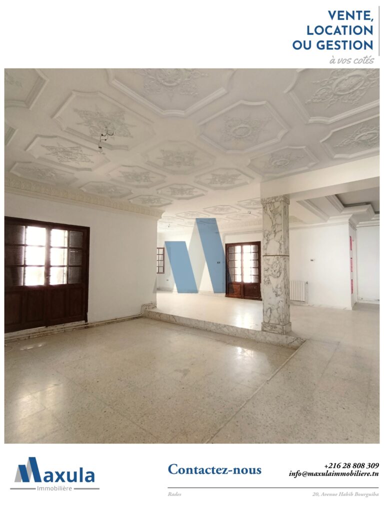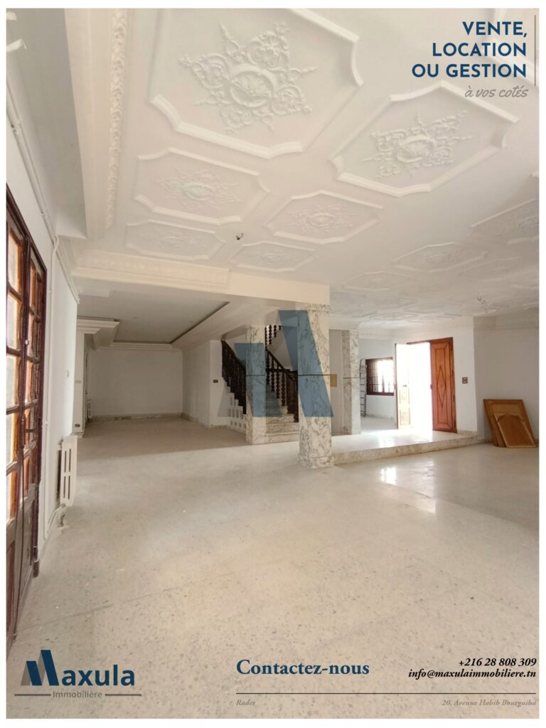 MAXULA IMMOBILIER vous propose à la VENTE une ÉLÉGANTE VILLA en R+2, offrant environ 500 m² bâtis implantés sur un terrain de 413 m². Ce bien, qui allie volumes généreux, fonctionnalité et potentiel est idéalement situé dans un quartier résidentiel calme à RADES MELIANE 1.