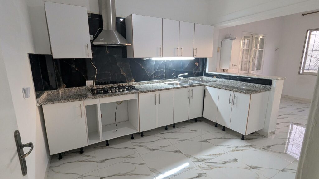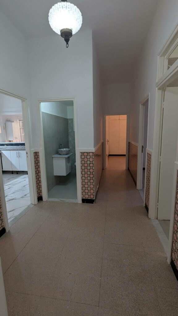 À louer, très bel appartement fraîchement rénové, situé sur la rue Habib Bourguiba au Kram, à seulement 5 minutes à pied de la plage.