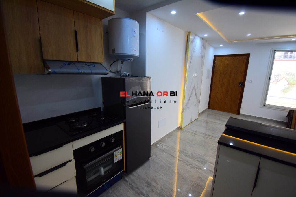 L’Agence EL HANA ORBI vous propose un studio moderne et élégant, idéalement situé dans un environnement sécurisé et prisé.