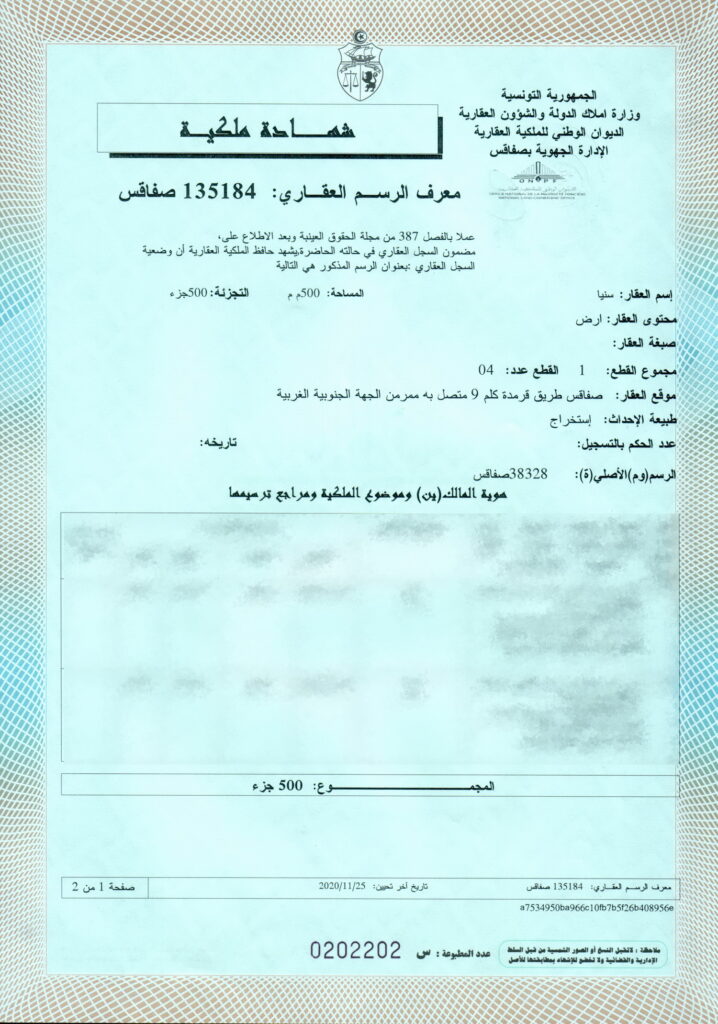Ce terrain, d'une superficie généreuse, est ouvert côté est et sud, offrant une vue dégagée et une exposition ensoleillée. Il est approuvé par la commune de Gremda et dispose d'un titre foncier bleu, garantissant ainsi la sécurité et la légalité de votre investissement. Tous les papiers sont en règle, y compris l'autorisation de bâtir datée du 26/05/2025, vous permettant de commencer vos projets de construction sans tarder.