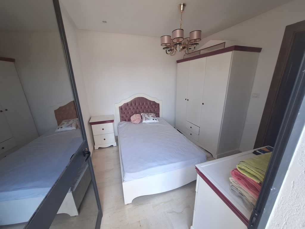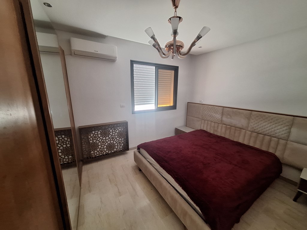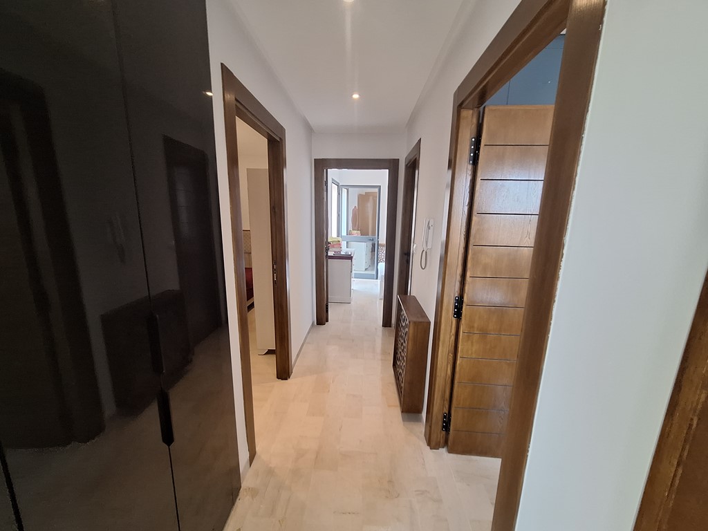 Le duplex comprend un salon spacieux, une cuisine moderne richement équipée, une chambre et des toilettes au rez-de-chaussée, ainsi que quatre chambres à coucher à l’étage, dont une avec balcon.