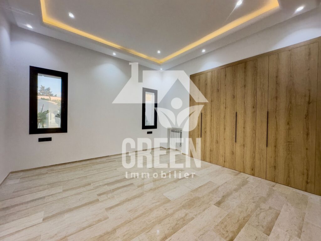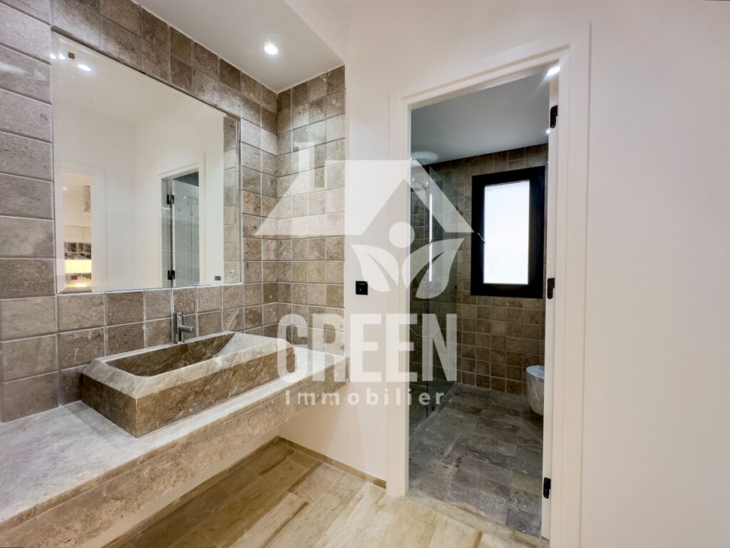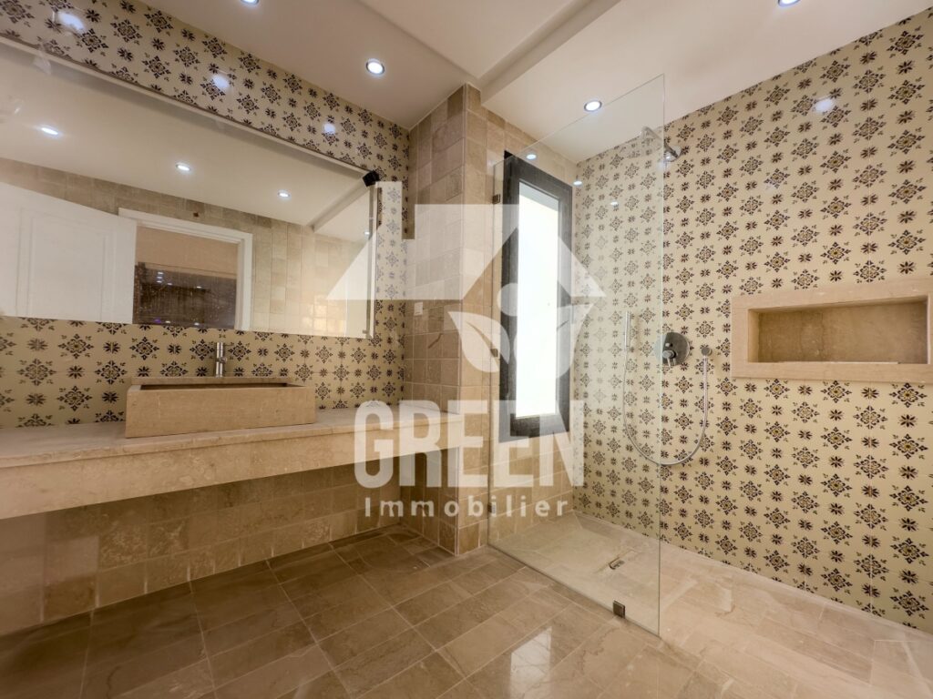 La villa comprend quatre suites, chacune composée d'une chambre, d'une salle de bain et d'un dressing, offrant ainsi une intimité parfaite pour chaque membre de la famille ou pour des invités. Les chambres sont conçues pour procurer un environnement calme et reposant, avec des espaces de rangement généreux pour votre confort.