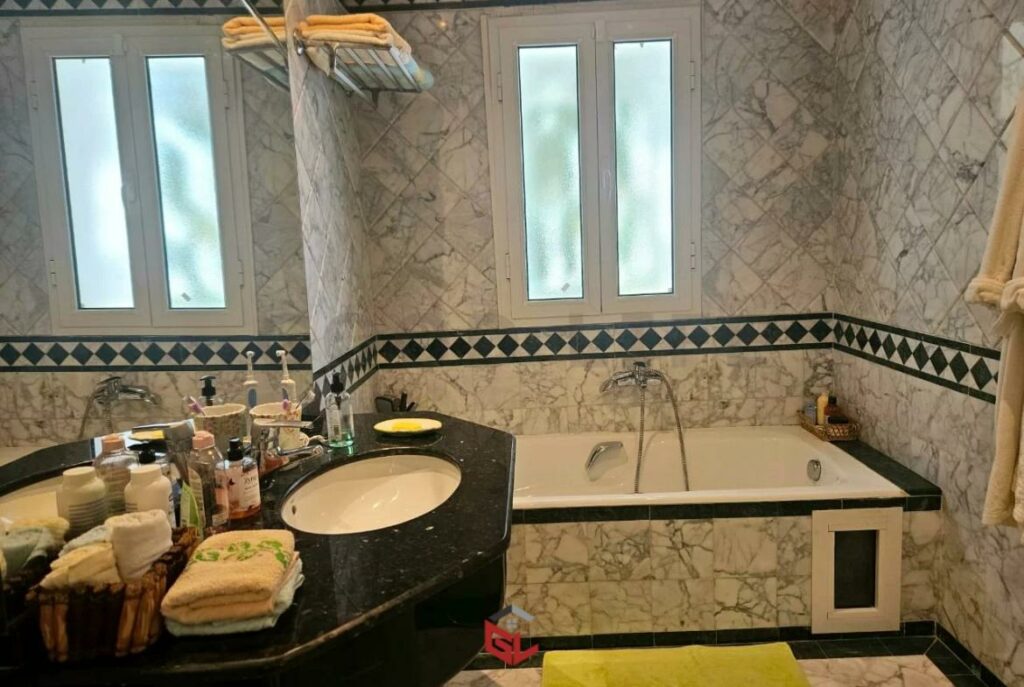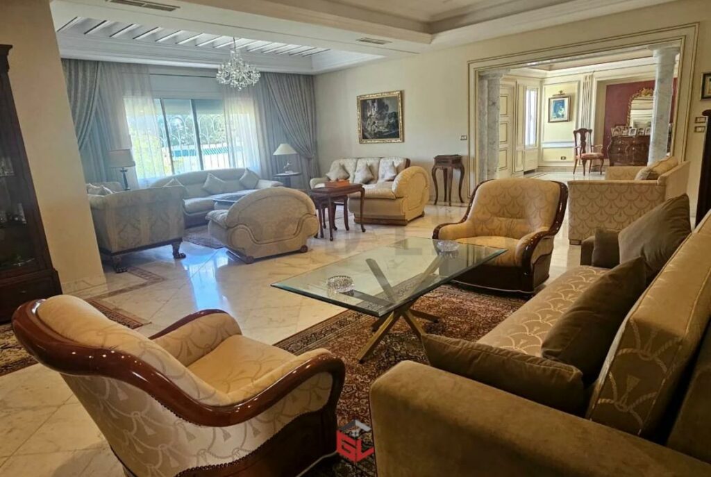 L'extérieur de la villa est tout aussi impressionnant, avec une deuxième cuisine, un jardin soigneusement entretenu, une chambre de gardien et un abri pouvant accueillir jusqu'à 5 voitures. La villa bénéficie également de l'équipement de chauffage central, de climatiseurs et d'un système d'alarme pour une sécurité maximale.
